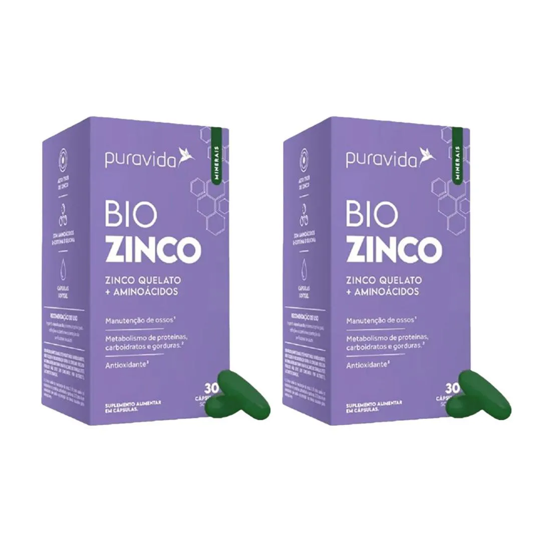 Kit 2 Bio Zinco Quelato + Aminoácidos - 30 Caps - Puravida