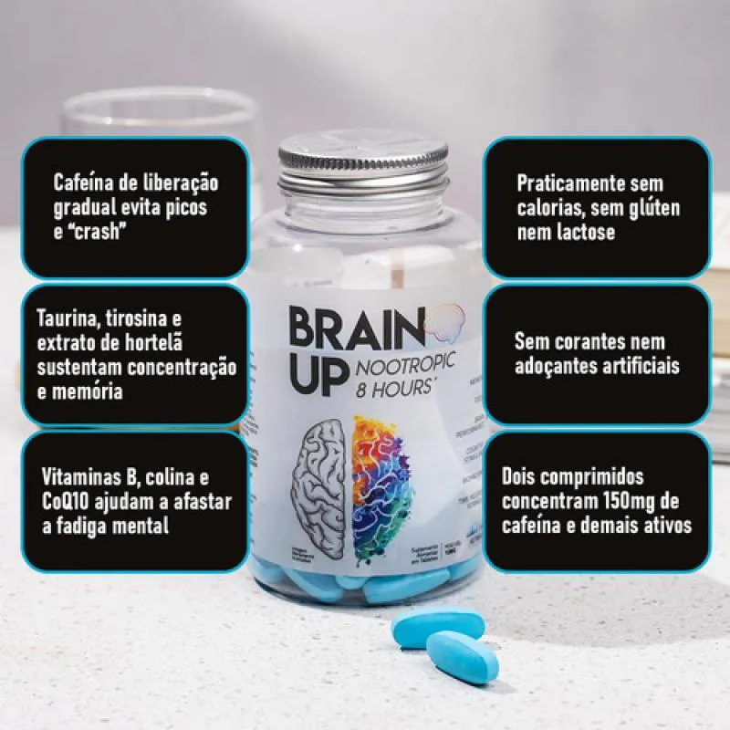 O Brain Up é um suplemento nootrópico avançado formulado para estimular e otimizar o desempenho cognitivo, com uma combinação de substâncias naturais que atuam no funcionamento mental. Seu objetivo principal é promover foco, memória, energia e produtividade intelectual, sendo indicado para estudantes, profissionais, atletas e pessoas que buscam melhorar seu desempenho mental, mesmo em condições de estresse, má alimentação ou sedentarismo.