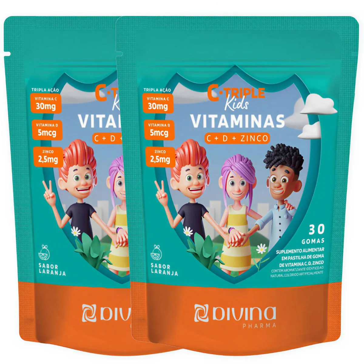 Kit 2 C-Triple Kids Vitaminas C + D + Zinco Imunidade Total 60 Gomas Sabor Laranja – Divina Pharma