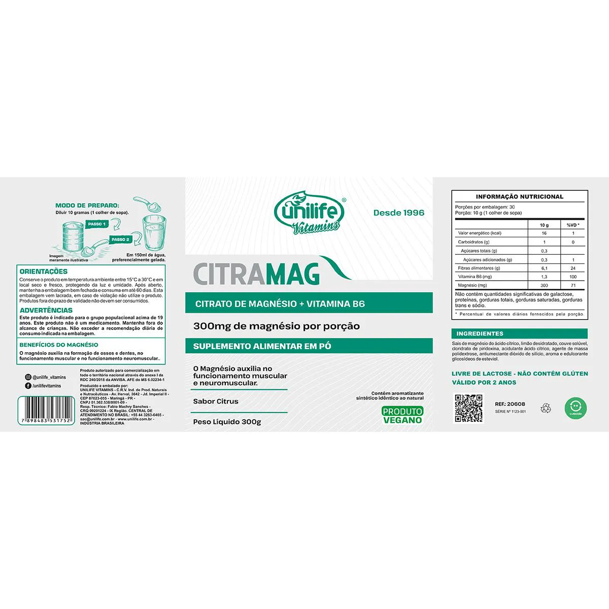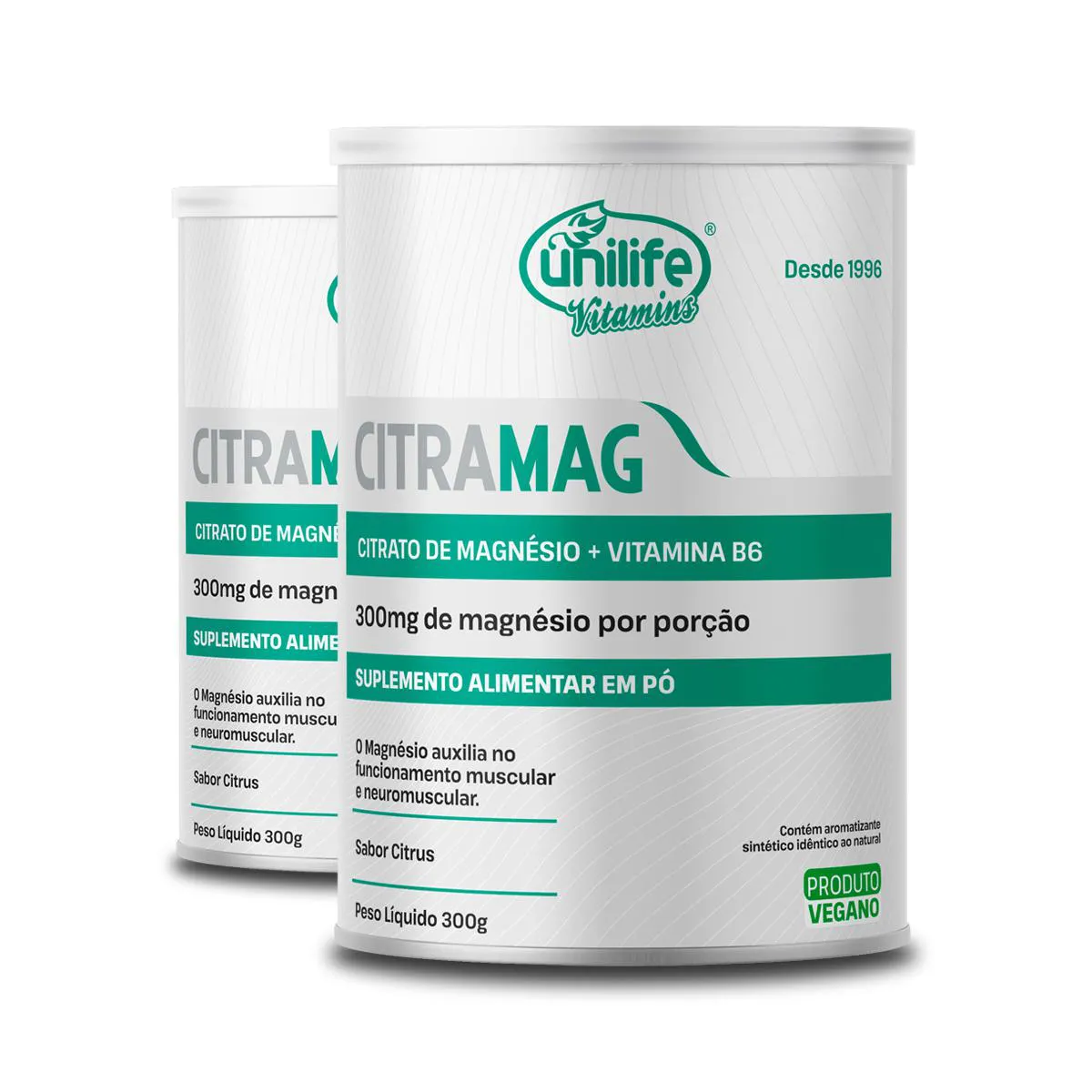 Kit 2 Citramag Magnésio + B6 Unilife 300G Sabor Citrus