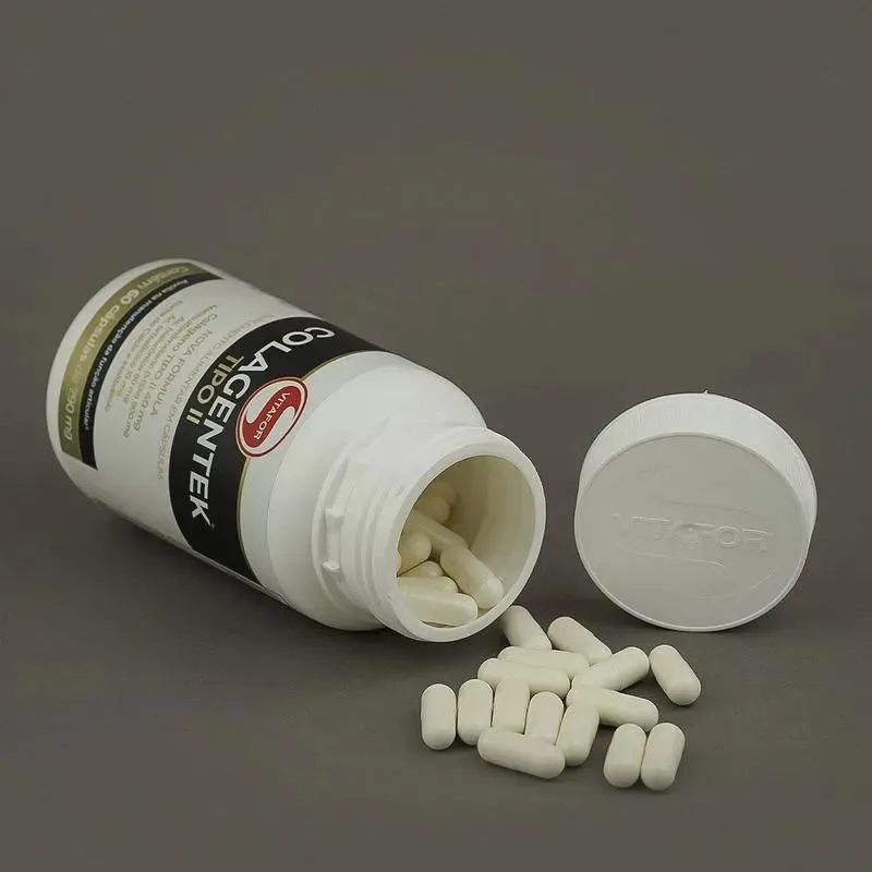 O Colagentek Tipo II é um suplemento alimentar composto por colágeno tipo II, metilsulfonilmetano (MSM), ácido hialurônico, extrato de alho em pó e minerais, sem adição de açúcares. Serve para auxiliar na manutenção da função articular, na formação e preservação de ossos e dentes, no metabolismo energético e no funcionamento muscular e neuromuscular, sendo especialmente benéfico por conter cálcio em sua formulação.