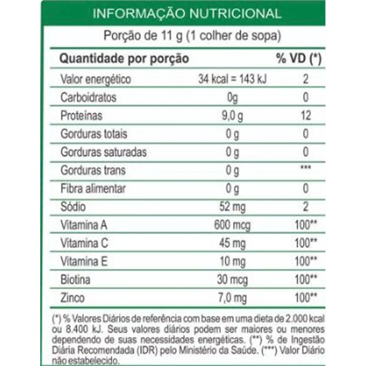 Colágeno Hidrolisado Bovino, Colágeno Hidrolisado Verisol, Polidextrose, Ácido Ascórbico, Bisglicinato De Zinco, Acetato De Tocoferol, Acetato De Retinol, Biotina, Aroma Idêntico Ao Natural De Limão Acidulante Ácido Cítrico, Edulcorante Natural Glicosídeos De Steviol, Antiumectante, Dióxido De Silício.