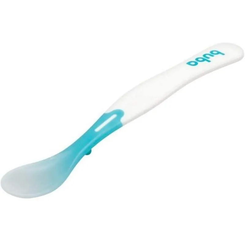 A Colher termossensível da Buba é prática e segura para as refeições dos pequenos, pois ela muda de cor, alertando caso o alimento esteja muito quente.