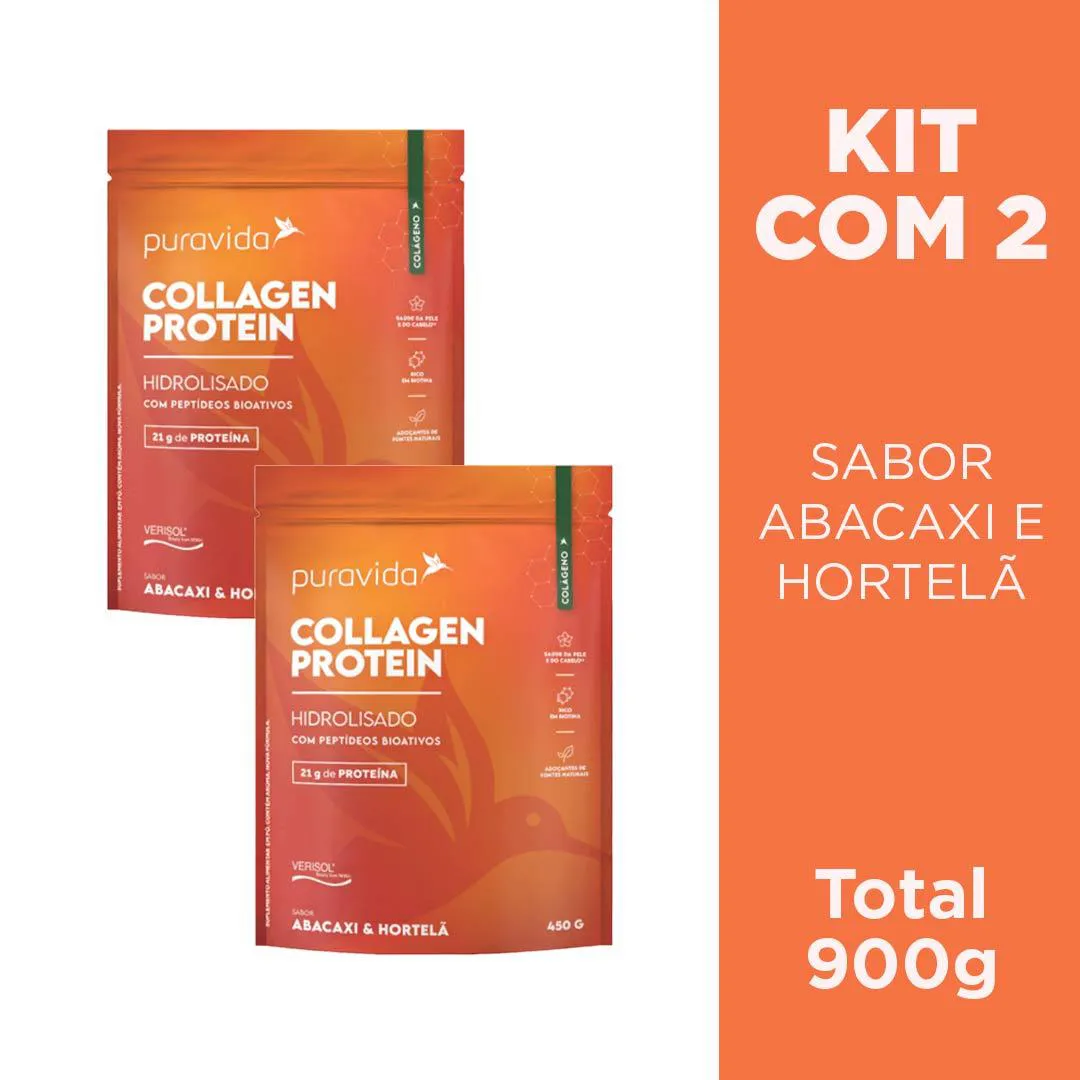 Kit 2 Collagen Protein Abacaxi e Hortelã - 450G - Puravida