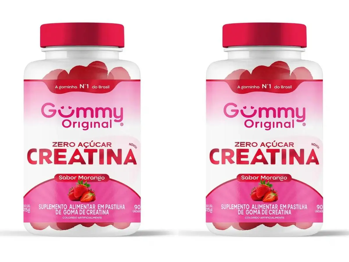 Kit 2 creatina Gummy Original Zero Açúcar Sabor Morango 90un