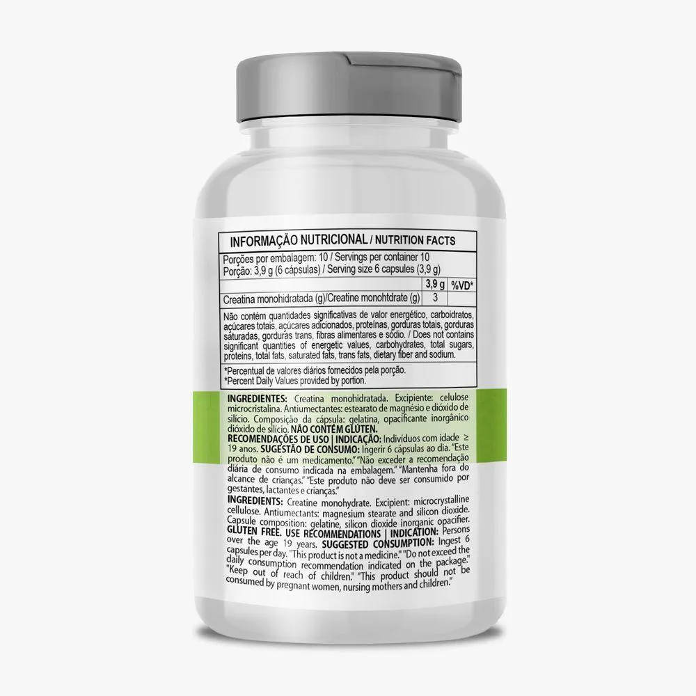 A Creatina Monohidratada em Cápsula é um suplemento alimentar desenvolvido para pessoas que praticam atividades físicas intensas, com o objetivo de aumentar a produção de energia para as células musculares, potencializando o rendimento do atleta durante o treinamento.