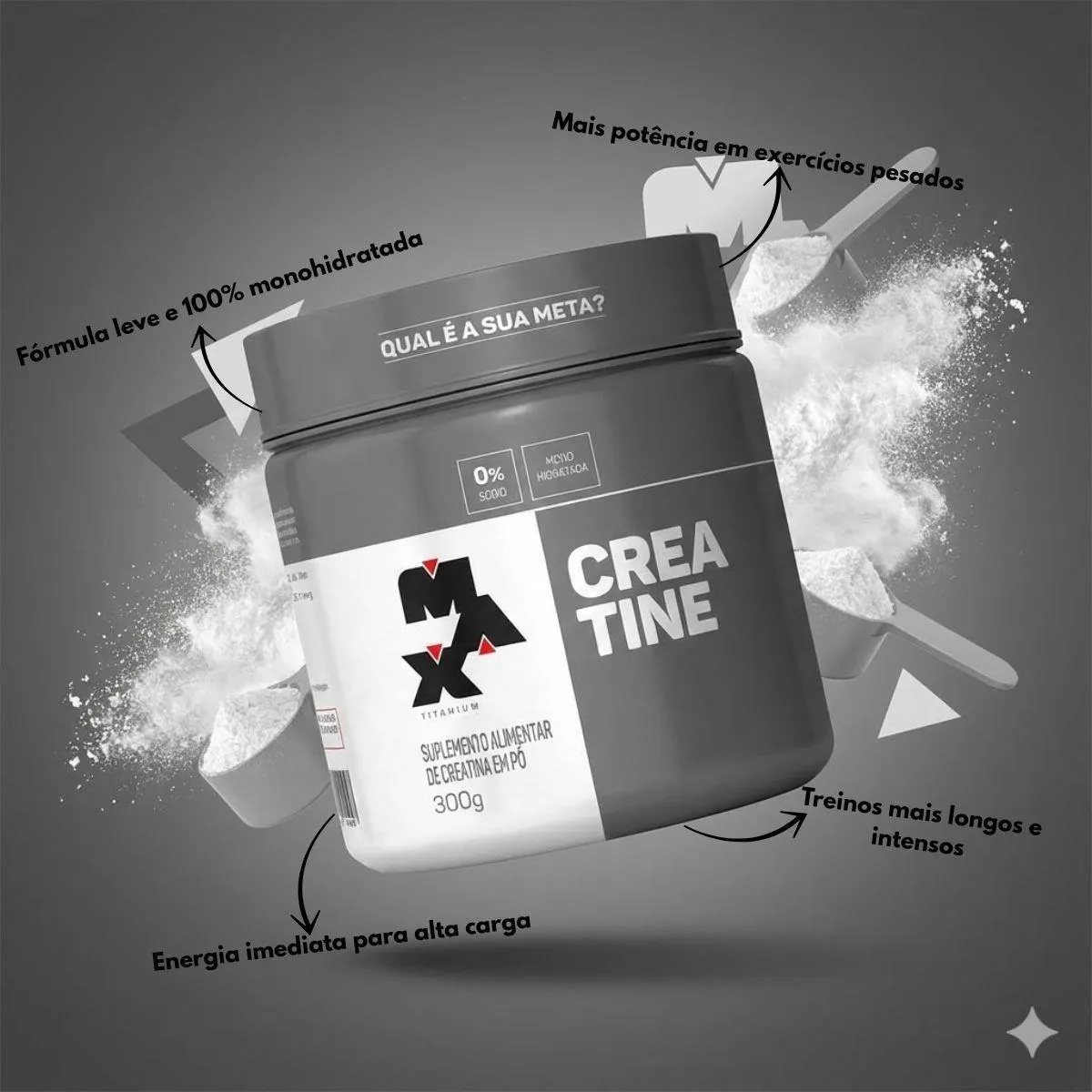 shakes. Também pode ser combinada com carboidratos, conforme a rotina alimentar individual, mantendo um preparo rápido e fácil. O kit contém 2 embalagens de 300g cada, suplemento em pó, creatina 100% pura monohidratada, fórmula leve. Não contém glúten. Indicado para adultos. Garanta agora o Kit 2 Creatina Monohidratada Max Titanium e aproveite a qualidade de uma marca referência no mercado. Estoque limitado. Aproveite o preço especial.