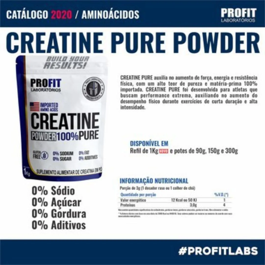 KIT 2 CREATINA MONOHIDRATADA PURA 300G REFIL - PROFIT LABS