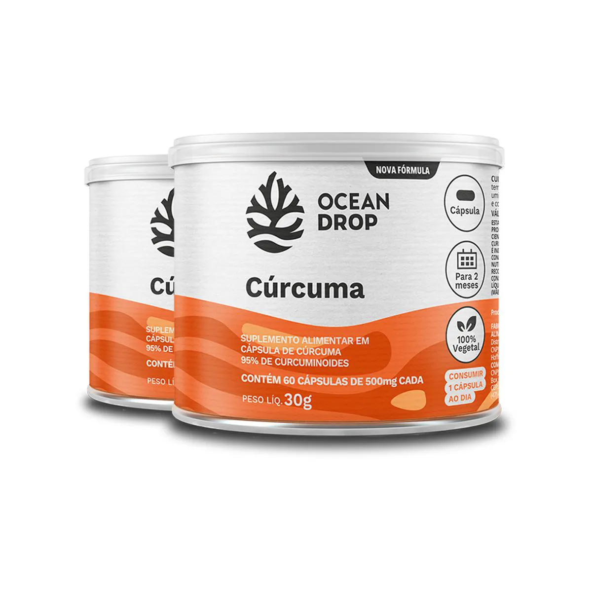 Kit 2 Cúrcuma Ocean Drop Vegana 60 Cápsulas
