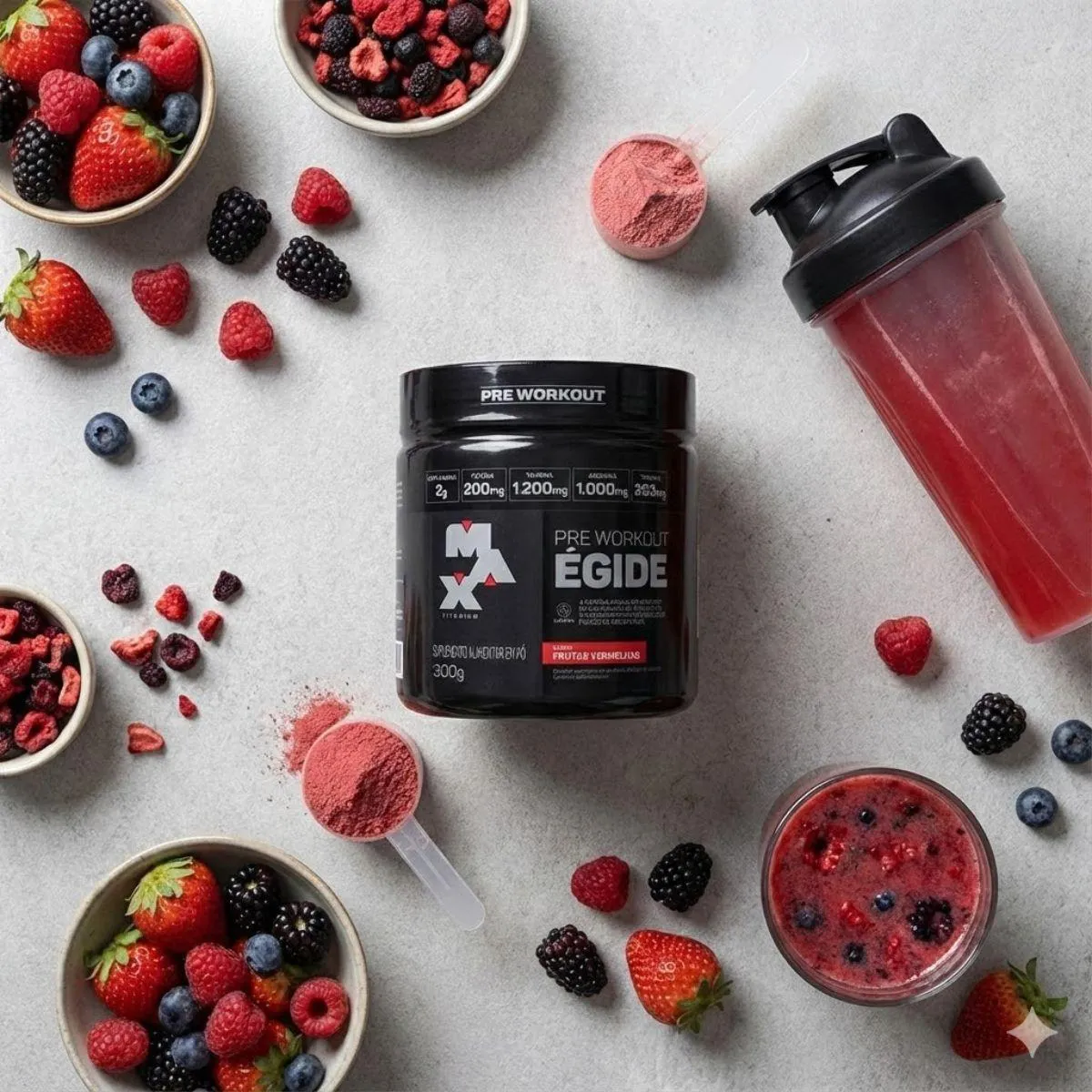 KIT 2 ÉGIDE pré treino FRUTAS VERMELHAS FOCO E DESEMPENHO 300G MAX