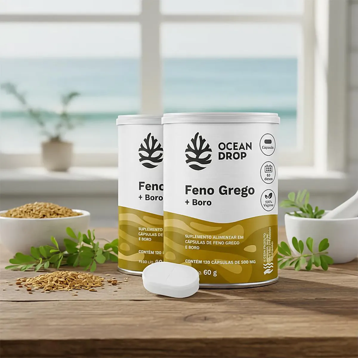 Kit 2 Feno Grego e Boro Ocean Drop 120 Cápsulas