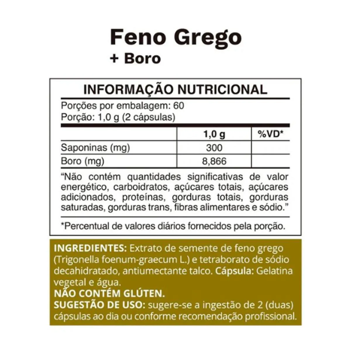 Extrato de semente de feno grego (Trigonella foenum-graecum L.), Tetraborato de sódio decahidratado. Antiumectante talco.