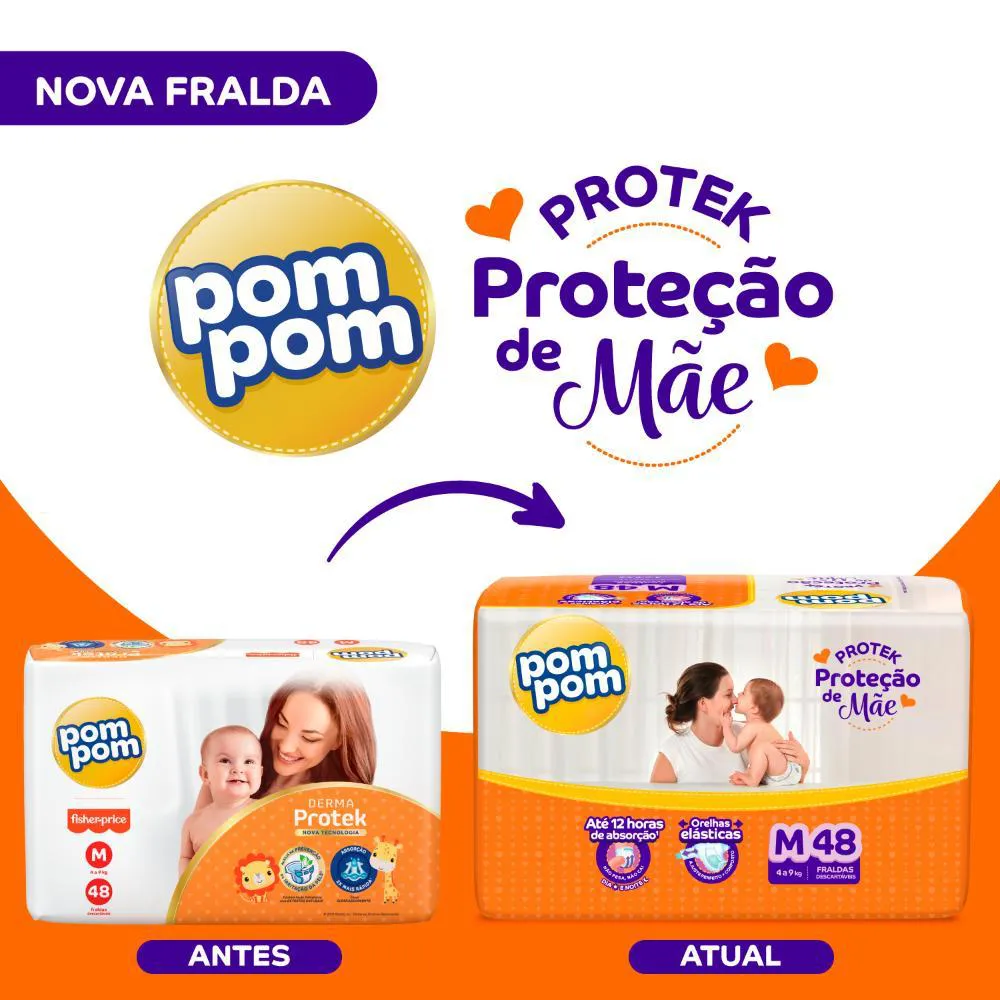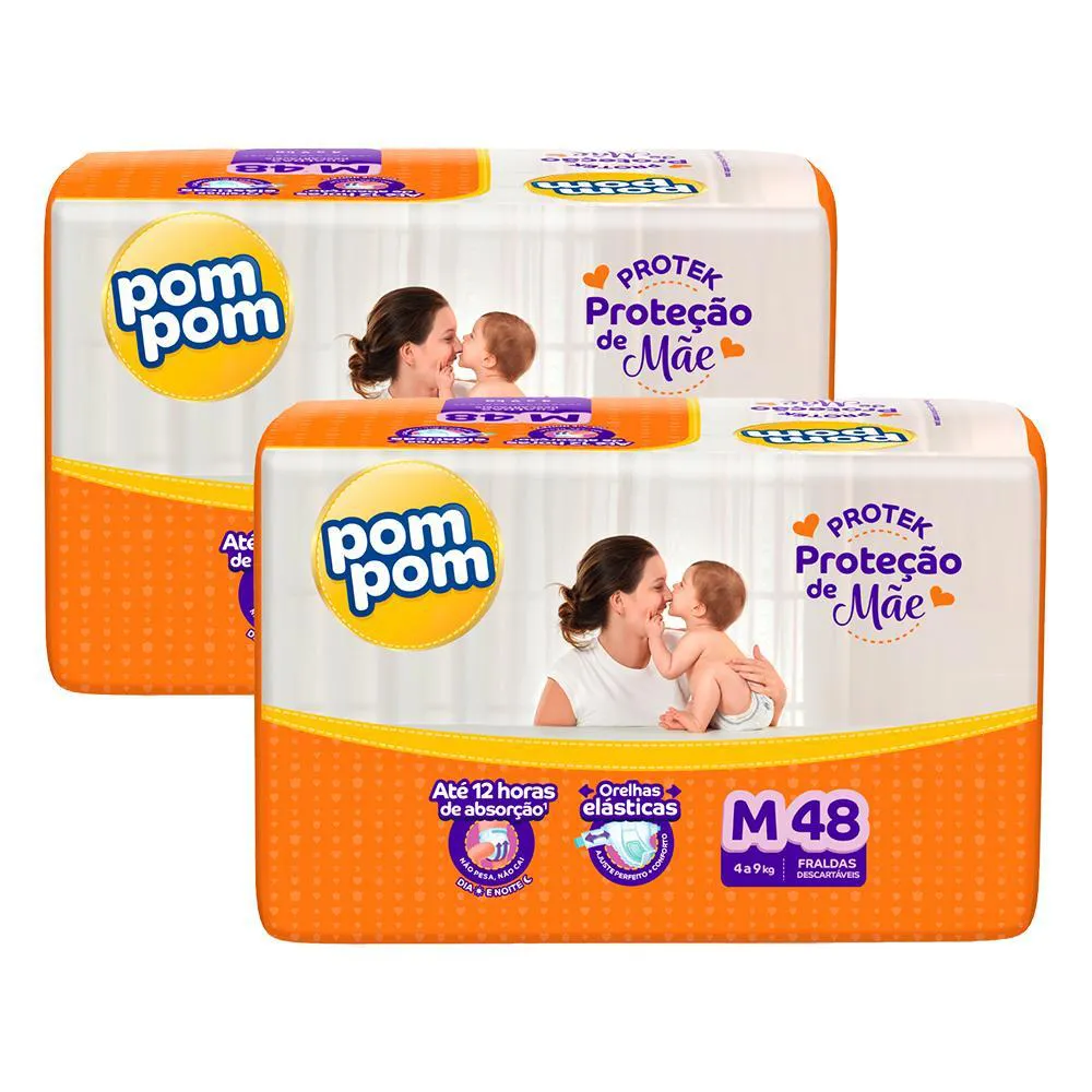 Kit 2 Fraldas Pom Pom Derma Protek Mega M com 48Un Cada