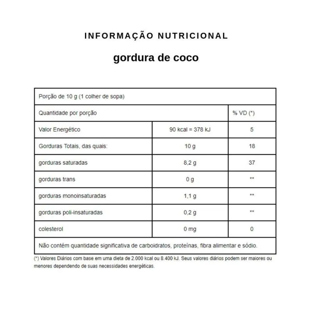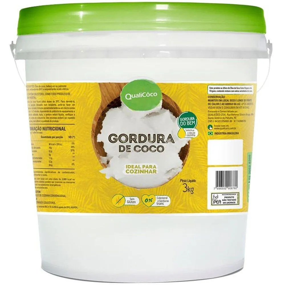 INGREDIENTE:Óleo de coco, babaçu e/ou palmiste refinado e sequestrante INS 330. NãoContém Glúten.