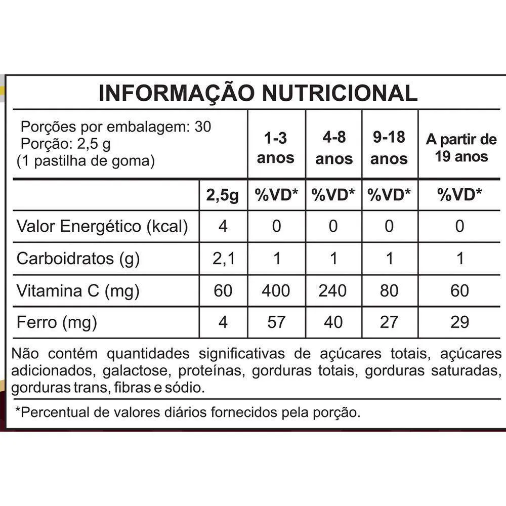 - Suplemento de ferro e vitamina C em goma.