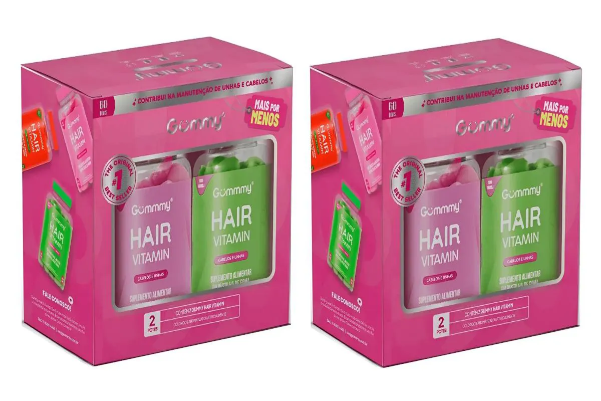 Gummy Hair Vitamin é um suplemento alimentar em gomas com forma de coração.