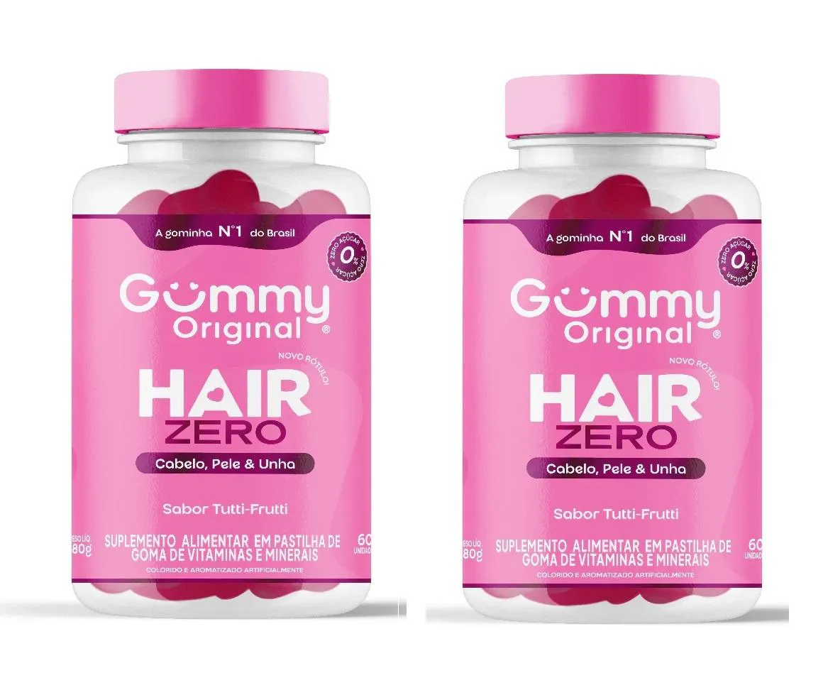 Kit 2 Gummy Hair Zero Açúcar cabelo Unha Tutti-frutti 60