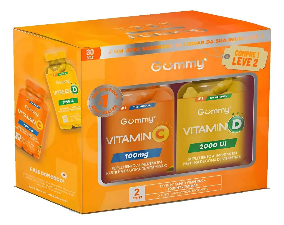 Kit 2 Gummy Vitamin Promopack 2 Potes Vitamina C + Vitamina D