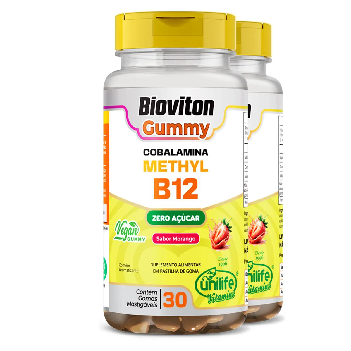 Kit 2 Gummy vitamina B12 Methyl Unilife 30 gomas Morango