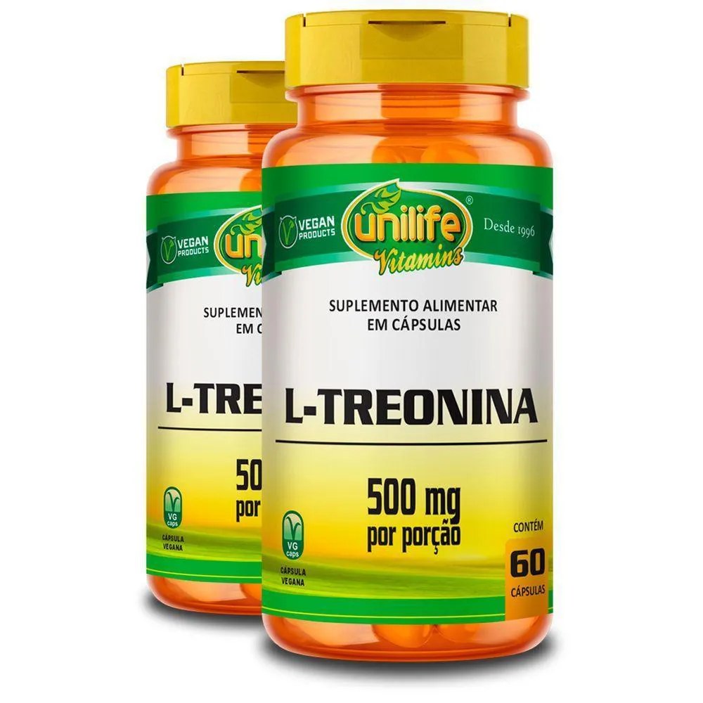 Kit 2 L-treonina Unilife 500mg 60 Cápsulas