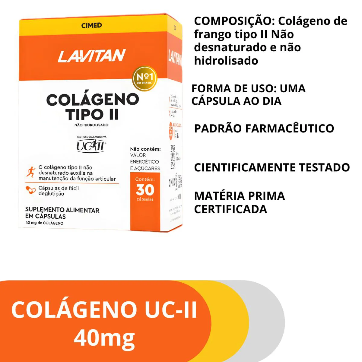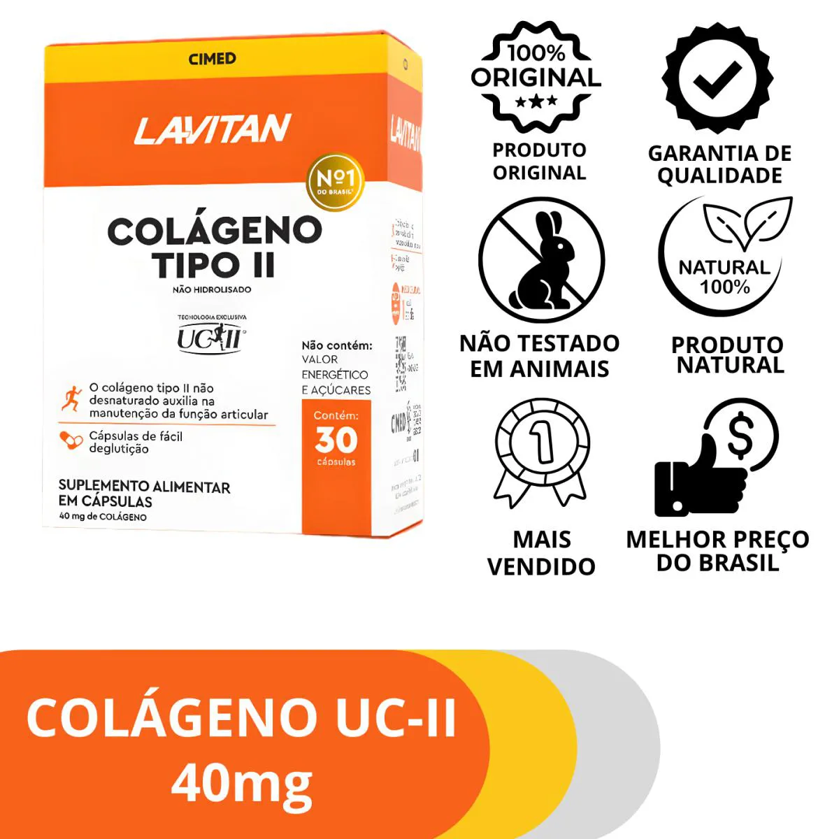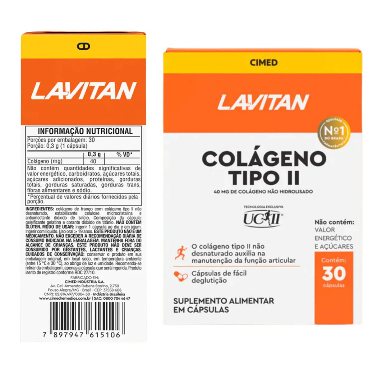 Kit 2 Lavitan Colageno Tipo 2 Ii Ucii 40Mg 30 Caps Colageno Tipo 2 Nao Hidrolisado Mobilidade Articulacoes Cartilagem