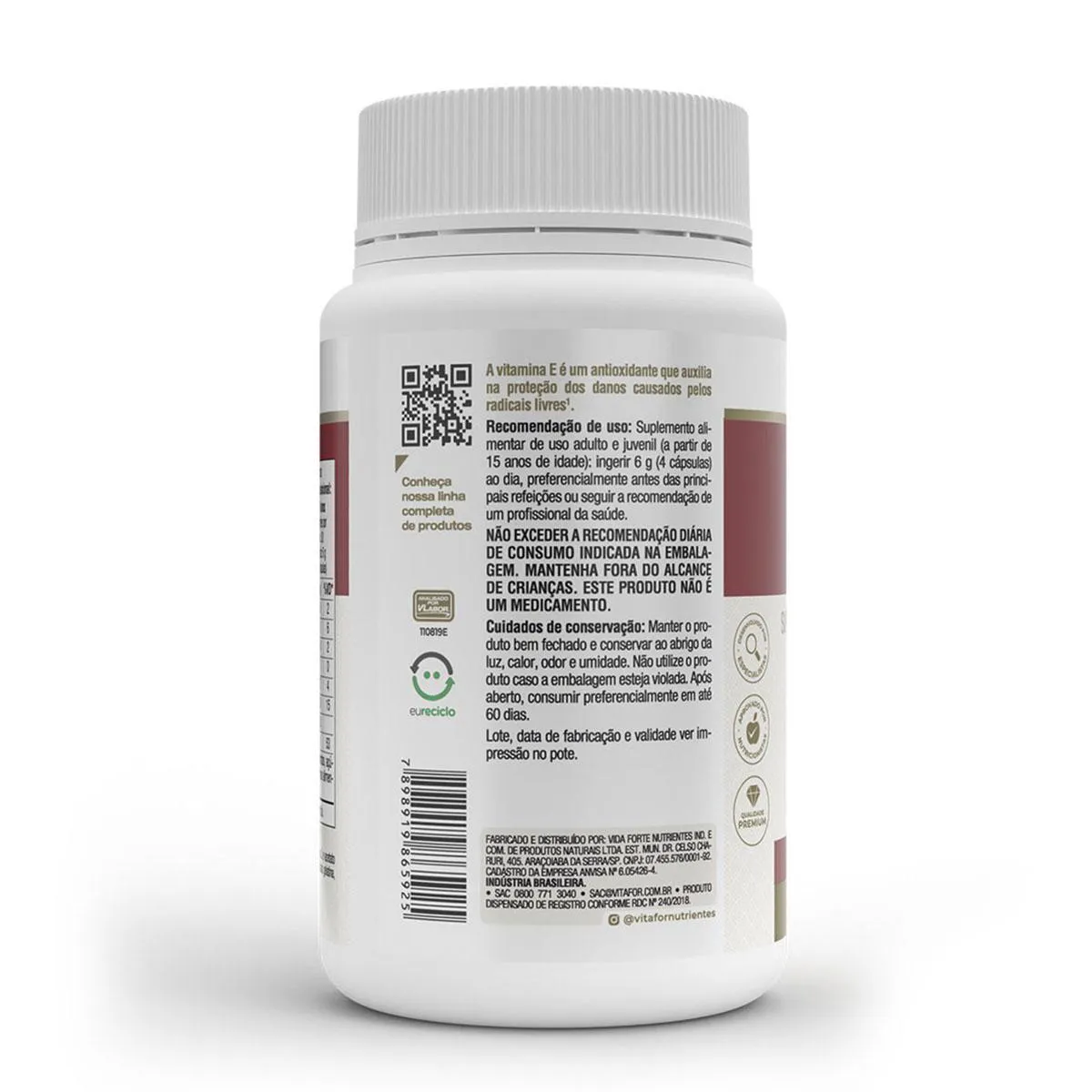 - Zero açúcar e glúten. Recomendações de uso: Suplemento alimentar de uso adulto e juvenil (a partir de 15 anos de idade): ingerir 4 cápsulas ao dia, preferencialmente antes das principais refeições ou seguir a recomendação de um profissional da saúde. Ingredientes: Óleo de cártamo (Carthamus tinctorius L.) e acetato de DL-alfa-tocoferol (vitamina E). Composição da cápsula: gelatina, água purificada e umectante glicerina. NÃO CONTÉM GLÚTEN. Conservação: - Manter o produto bem fechado e conservar ao abrigo da luz, calor, odor e umidade.