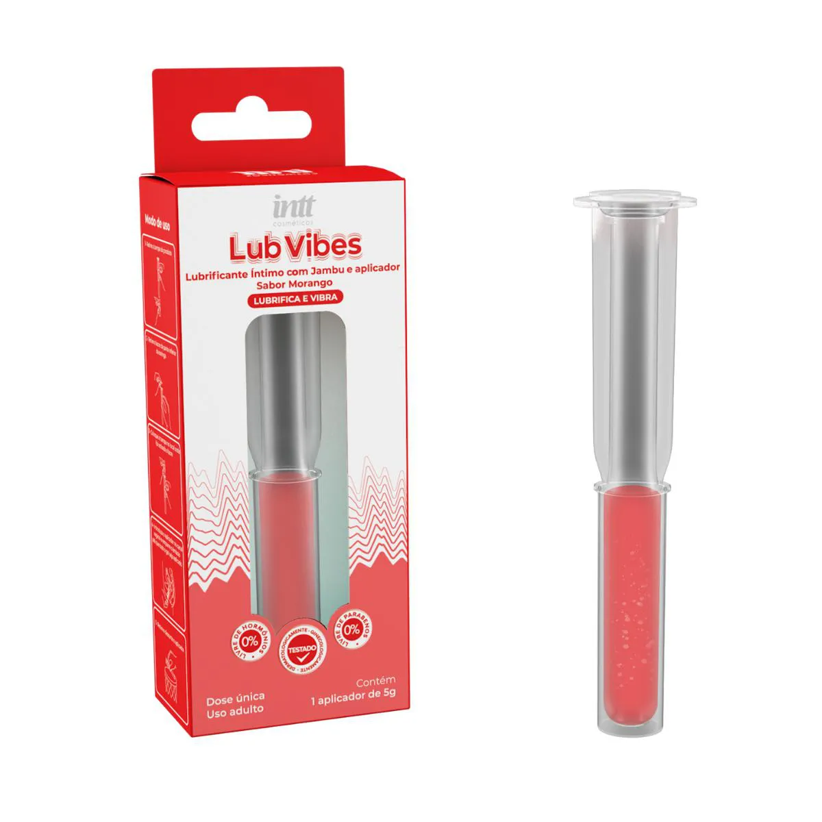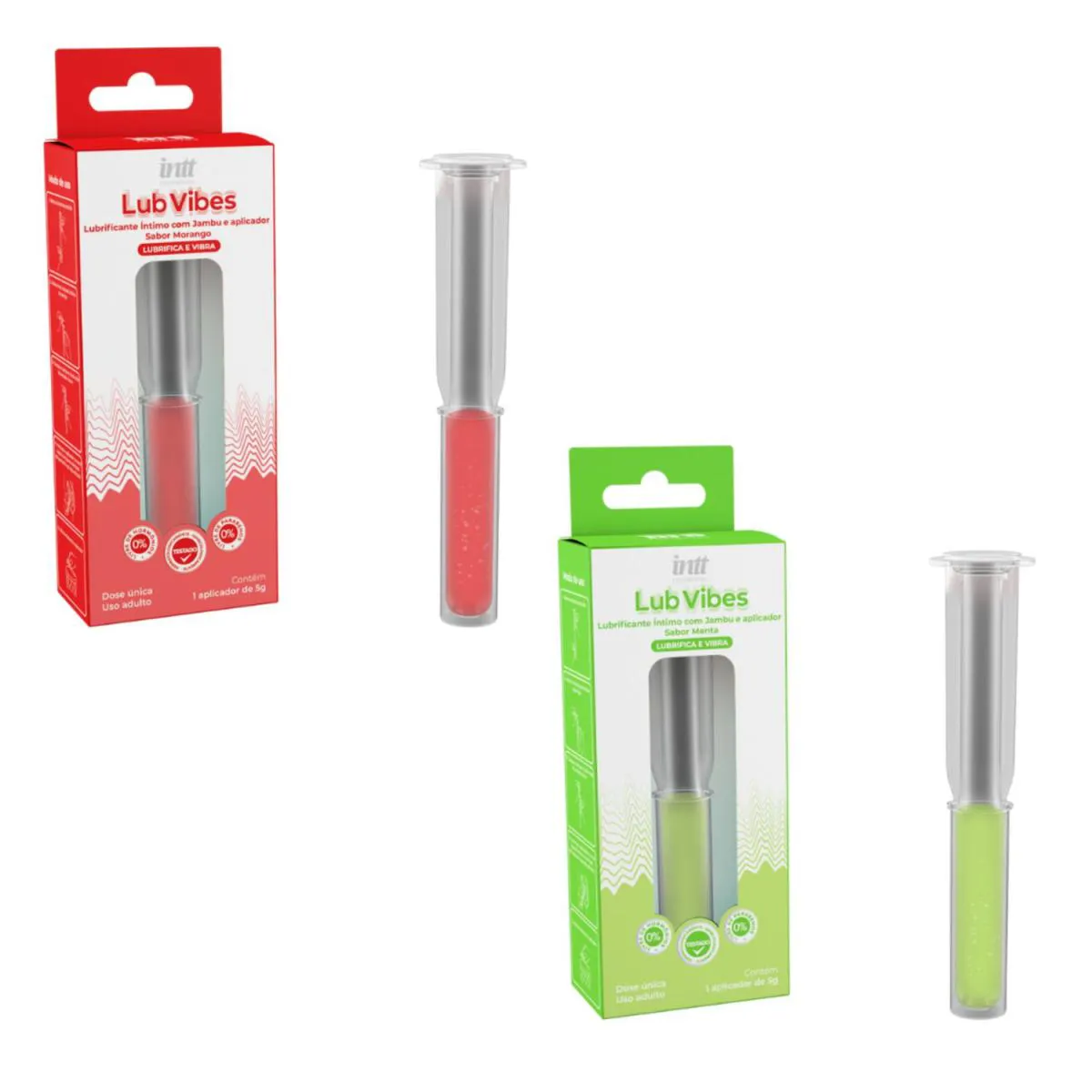 O lub vibes é um lubrificante íntimo com aplicador, nas versões sabor de menta e morango, possui 2 benefícios: lubrificar de uma maneira mais intensa, pois seu gel fixa-se a parede vaginal proporcionando uma lubrificação mais eficaz e profunda. O Lub Vibes também excita, sua formula possui Jambu, uma planta que quando aplicada na proporção correta tem efeito de vibração. Ou seja, o Lub-Vibes lubrifica e vibra proporcionando muito mais prazer para seus momentos de intimidade.Informações e ativos: Sua fórmula se assemelha a lubrificação natural da mulher e não causa danos ao preservativo e sex toys.Modo de uso:
