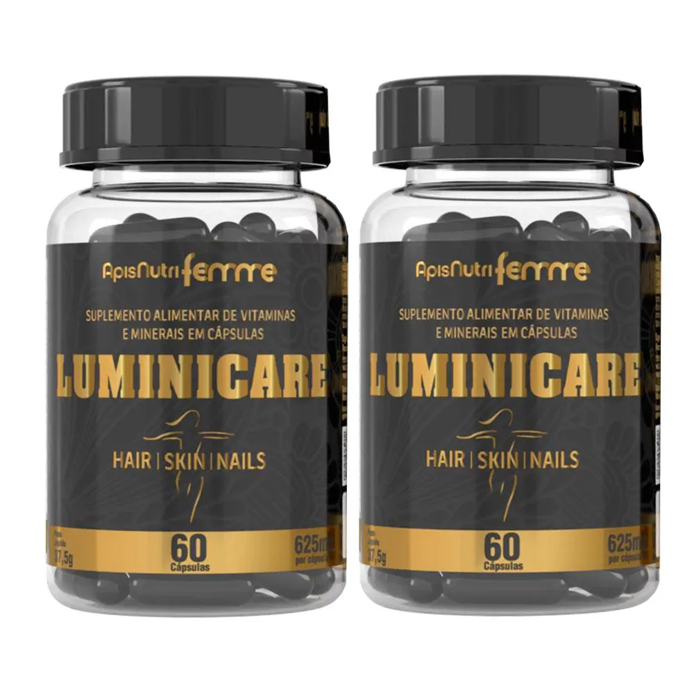 Kit 2 Luminicare Colágeno Multivitamínico Cabelos Unhas e Pele 60 Cáps Apisnutri