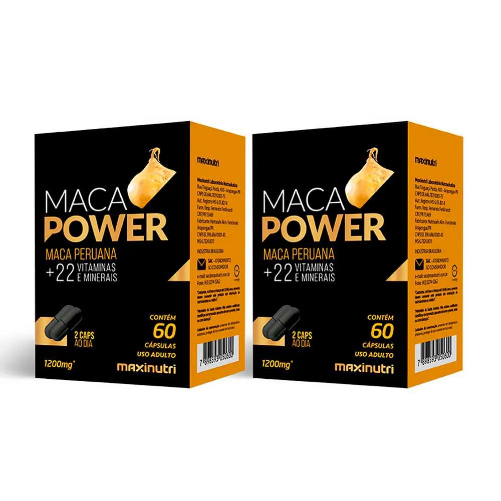 KIT 2 MACA PERUANA POWER 22 VITAMINAS E MINERAIS 60 CáPS MAXINUTRI