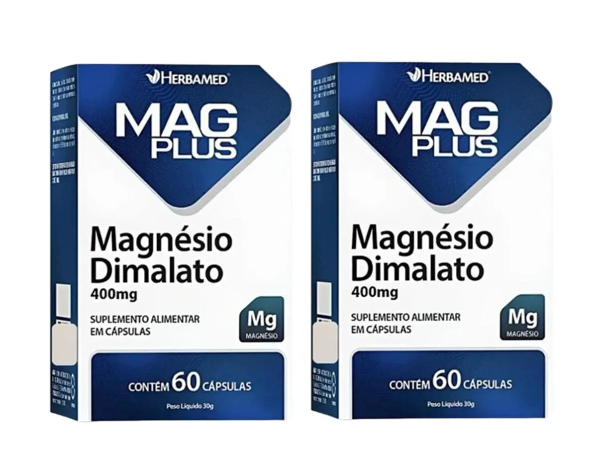 Kit 2 Mag Plus Magnésio Dimalato 400mg 60 cápsulas - Herbamed
