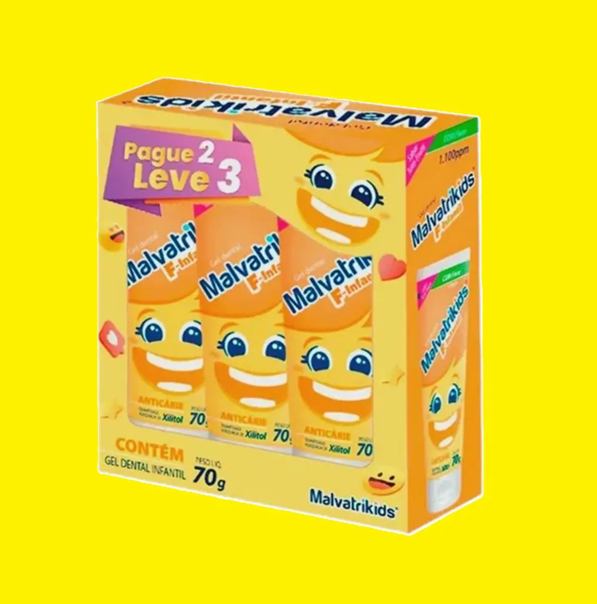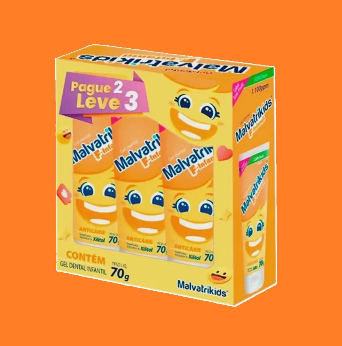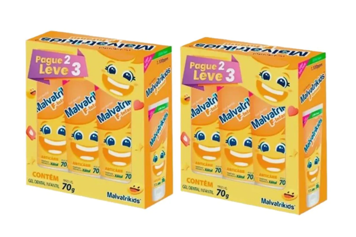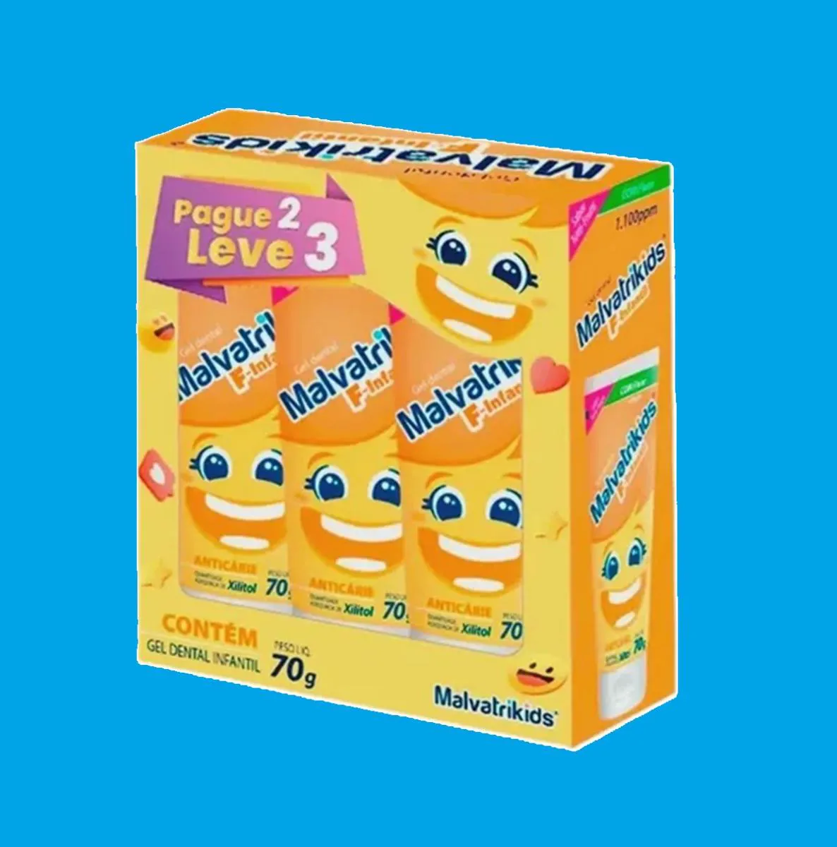 Kit 2 Malvatrikids Gel Dental F-Infantil 3 Un com Flúor 70G