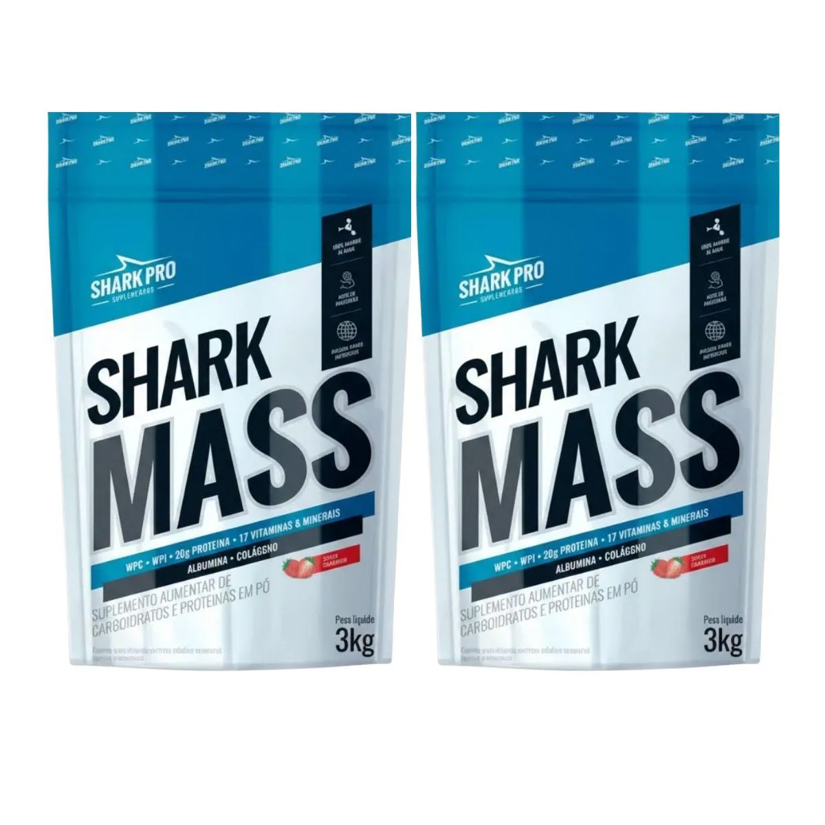 Kit 2 Massa Shark Pro 3Kg Morango Hipercalórico 20G Proteína Shark Pro