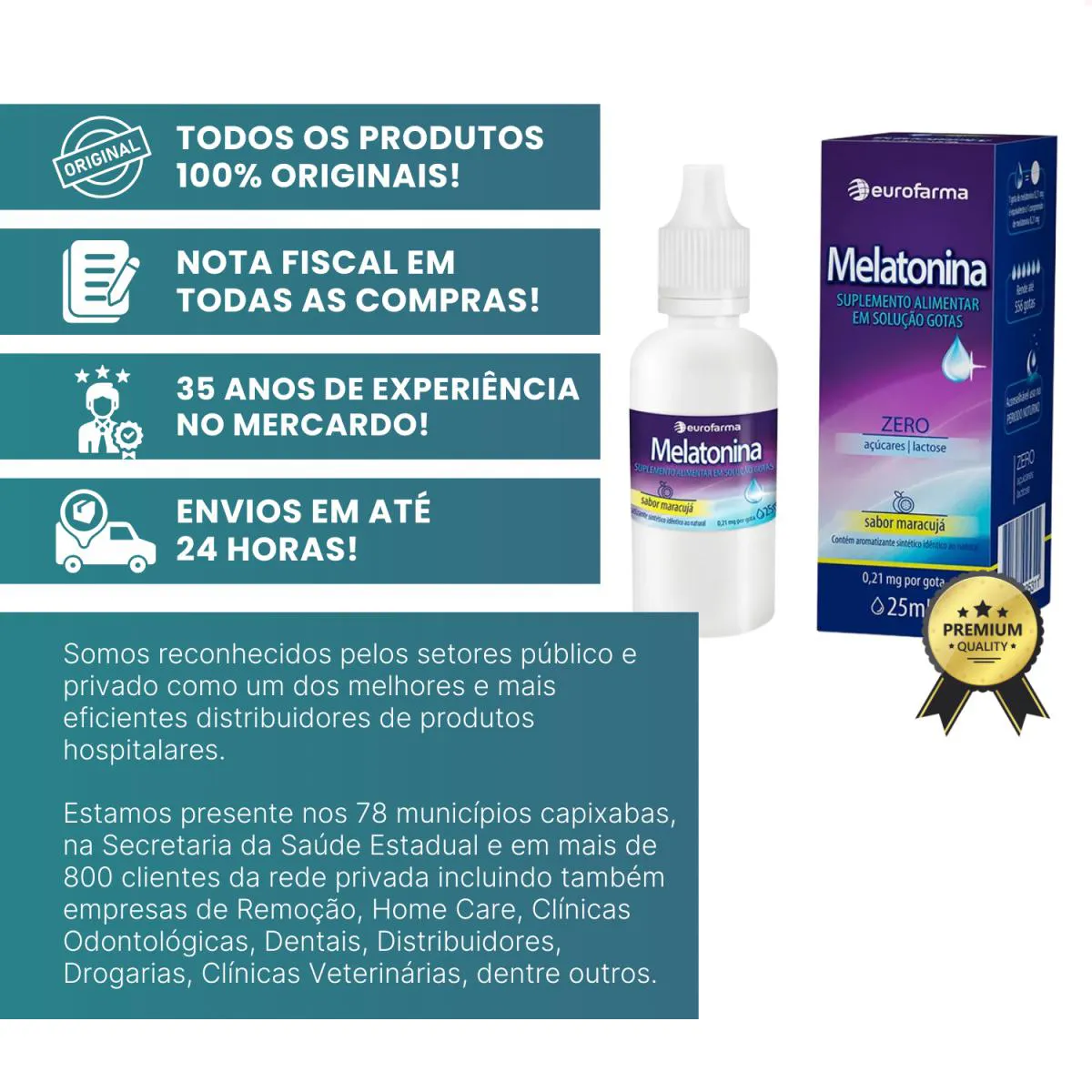 Desde 1990 atuamos com foco em licitações públicas para atendimento a hospitais e clínicas médicas do ES. Somos reconhecidos pelos setores público e privado como um dos melhores e mais eficientes distribuidores de produtos hospitalares, afinal, estamos presente nos 78 municípios capixabas, na Secretaria da Saúde Estadual e em mais de 800 clientes da rede privada incluindo também empresas de Remoção, Home Care, Clínicas Odontológicas, Dentais, Distribuidores, Drogarias, Clínicas Veterinárias, dentre outros.