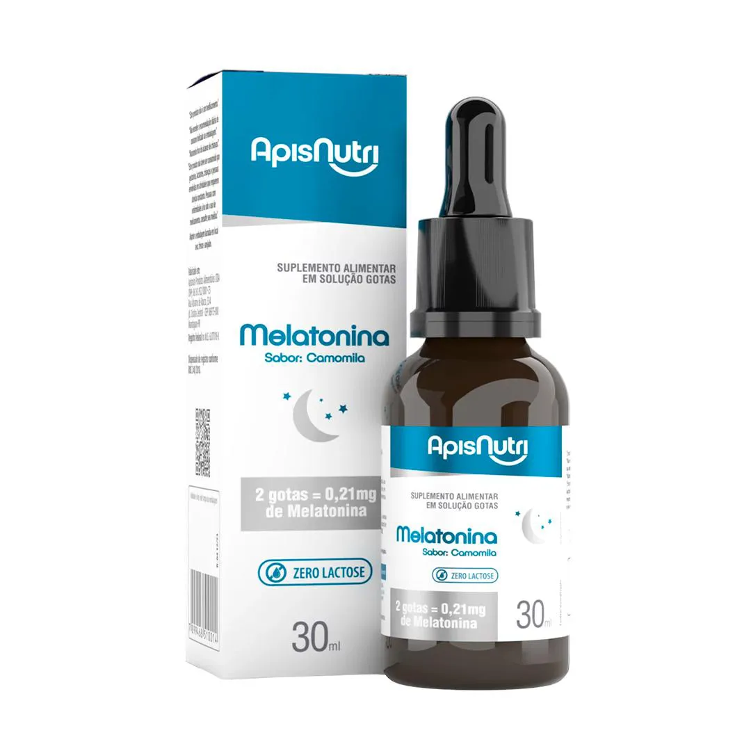 A Melatonina Gotas da Apisnutri é um suplemento alimentar formulado com 0,21 mg de melatonina por porção (2 gotas), desenvolvido para ser utilizado como suporte à rotina noturna. Possui aroma natural de camomila e vem em embalagem de 30 ml com conta-gotas para facilitar o fracionamento da dose.