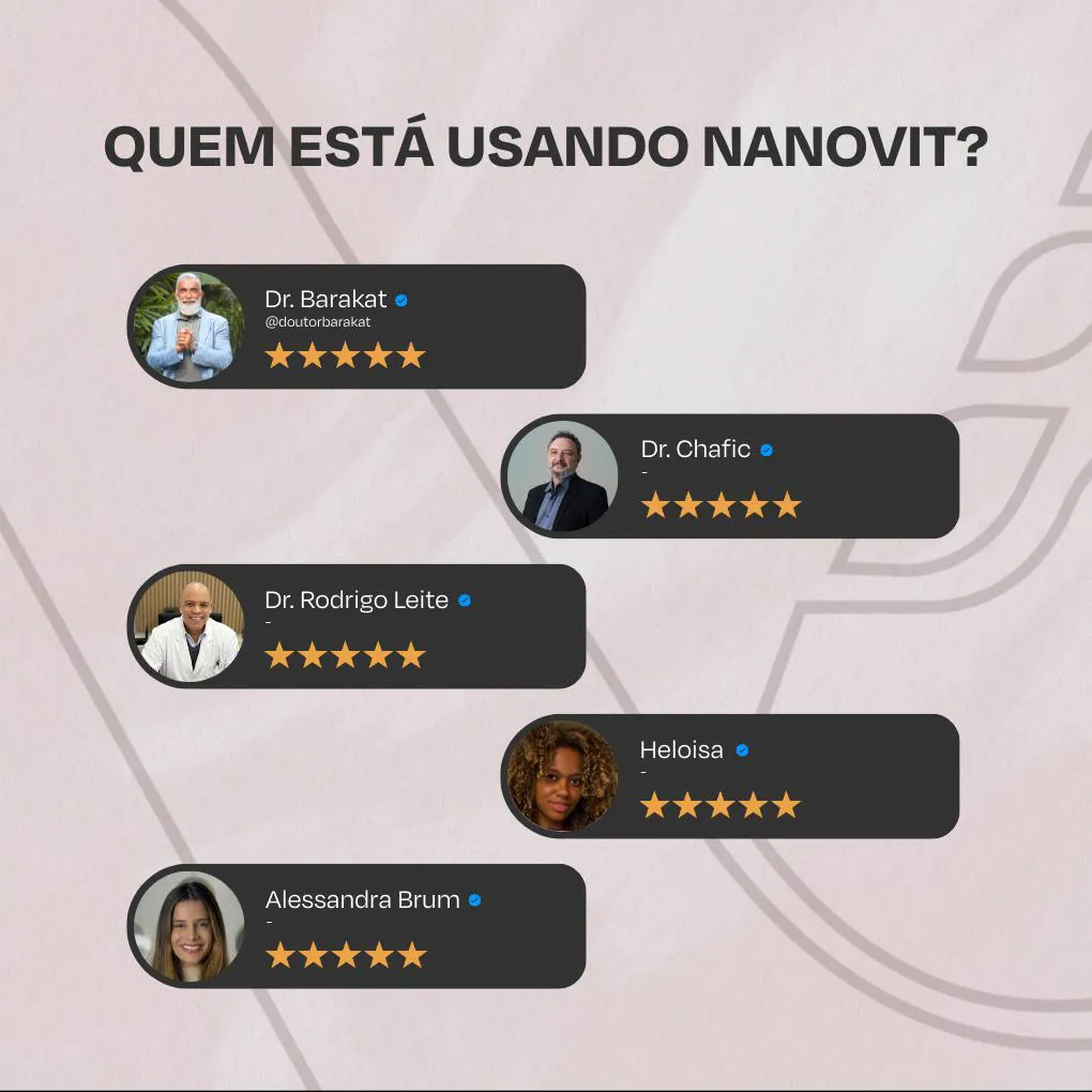 Peso Líquido: 30g. Validade: 01/2028. Porção: 2 cápsulas (1,0 g), contém: N-Acetil L-Cisteína: (260 mg) Isso se traduz na fórmula com maior concentração do mercado quando se fala de suplemento à base de N-Acetil L-Cisteína. Fórmula exclusiva Nanovit Nutrition® 2 – Ingredientes: N-acetil-L-cisteína. Excipiente: amido de milho. Antiumectante: dióxido de silício. Composição da Cápsula: gelatina, umectante e glicerina. NÃO CONTÉM GLÚTEN / NÃO CONTÉM LACTOSE 3 – Sugestão de uso Ingerir duas (2) cápsulas ao dia, junto a uma refeição, ou de acordo com a orientação de nutricionista e/ou médico 4 - Recomendações: Conservar ao abrigo da luz, calor e umidade. Após aberto consumir em até 30 dias. Produto indicado para o grupo populacional acima de 19 anos. Este produto não é um medicamento. Não exceder a recomendação diária de consumo indicada na embalagem. Mantenha fora do alcance de crianças. Gestantes, lactantes e crianças só devem ingerir este produto sob orientação de um profissional de saúde. O Nano 5Mag da Nanovit segue a regulamentação da RDC nº 243/2018 da Anvisa e está devidamente enquadrado na RDC 990/2025 5 – Aviso legal: Idade mínima recomendada: 19 anos Consumir junto com alimentos facilita a assimilação Este produto é um suplemento alimentar, e não um medicamento. Suplementa dietas insuficientes. Consulte seu médico e/ou farmacêutico. 6 – Sobre a Nanovit Nanovit é uma marca de suplementos e vitaminas que tem aprovação médica e clínica dos maiores especialistas do Brasil em saúde integrativa. Seus produtos são todos desenvolvidos em parceria com médicos renomados, nutricionistas e farmacêuticos. As matérias primas são rastreadas e importadas, garantindo máxima eficiência para o consumidor final. O compromisso com a qualidade e atendimento são inabaláveis, possui canais próprios de atendimento e selos de reputação verde em reciclagem, boas práticas de fabricação e atendimento. Todos os produtos são devidamente notificados na Anvisa e FDA EUA. Sua produção é livre de corantes artificiais e/ou quaisquer nutrientes de origem laboratorial, prezamos por um produto 100% natural para que a assimilação e biodisponibilidade sejam na dosagem máxima. As fórmulas são todas sinérgicas, garantindo a quantidade eficiente e um mix completo de nutrientes para o objetivo de cada produto, sempre com respaldo médico. Confira nossas redes sociais e veja quais são os nomes por trás da Nanovit Nutrition e descubra sua melhor versão.