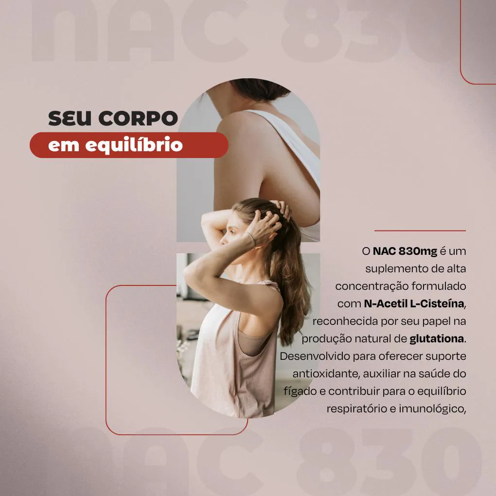 Sua fórmula contém N-Acetil L-Cisteína, um aminoácido precursor da glutationa, um dos principais antioxidantes produzidos naturalmente pelo corpo, que atua no combate aos radicais livres e no suporte aos processos naturais de desintoxicação.