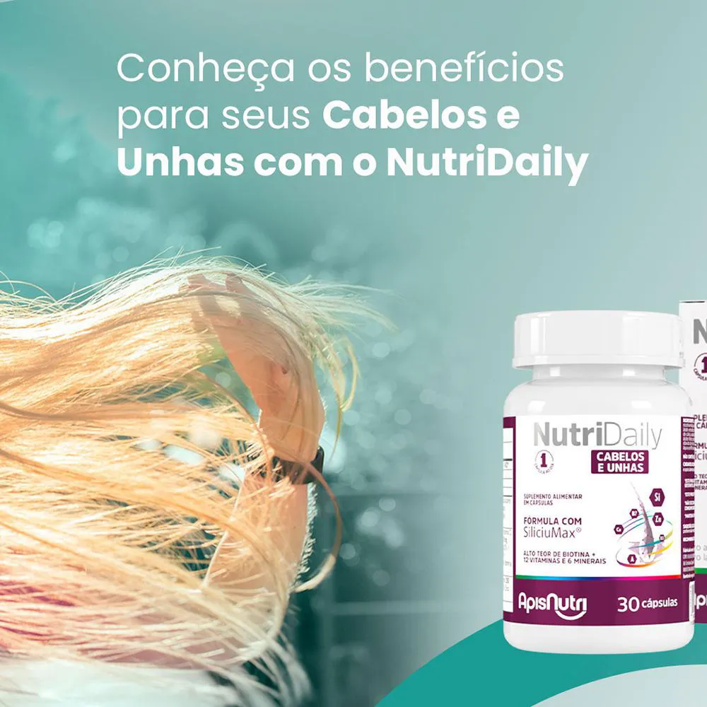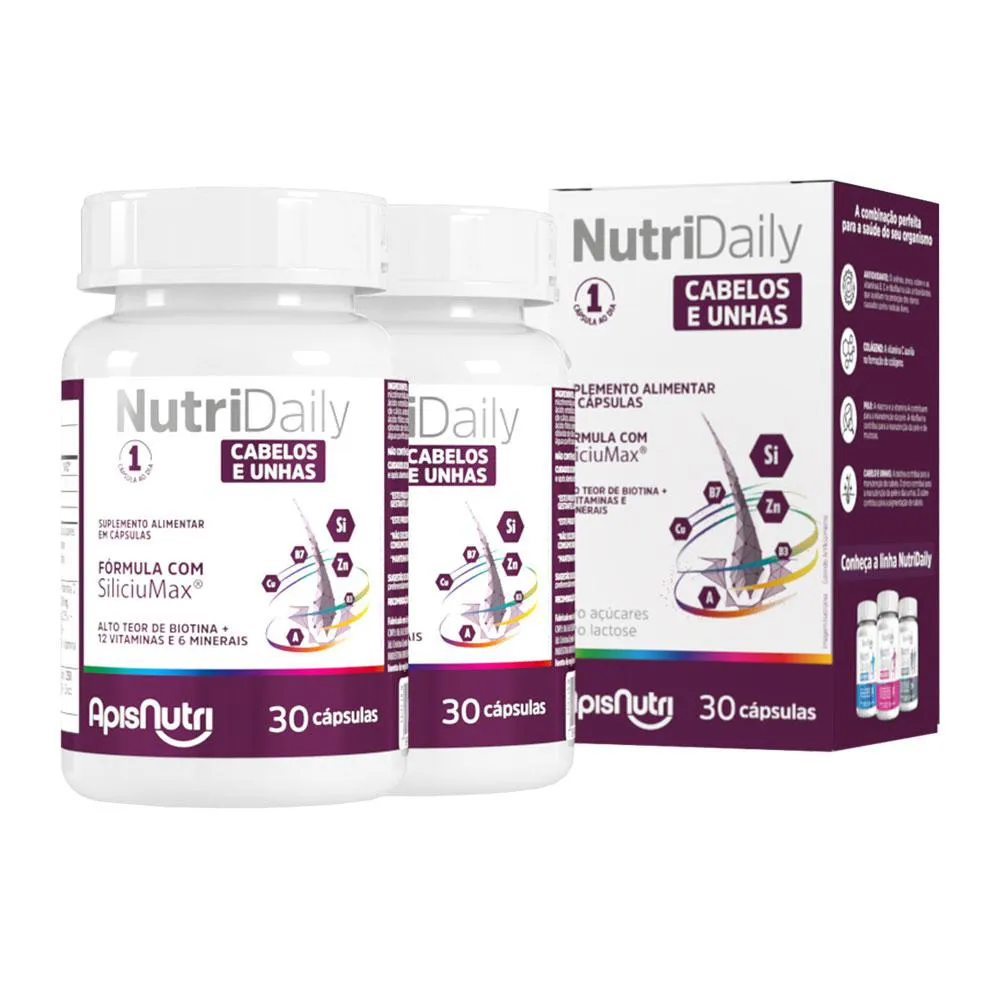 Kit 2 NutriDaily Cabelos Unhas Alto Teor de Biotina 700mg 30 Cáps Apisnutri