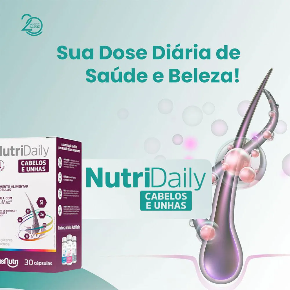 Propondo uma suplementação direcionada à nutrição capilar e ungueal, NUTRIDAILY CABELOS E UNHAS é composto por ingredientes que são a base nutricional para uma boa construção, fortalecimento, pigmentação e crescimento dos fios de cabelos, bem como das unhas.
