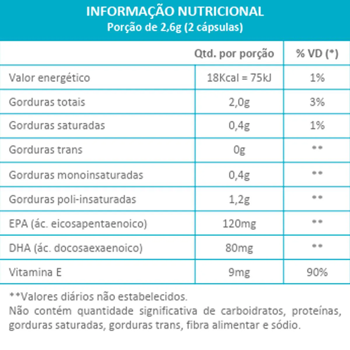 O produto é um suplemento alimentar composto por ácidos graxos ômega-3, ômega-6 e ômega-9, enriquecido com vitamina E. Serve para fornecer gorduras insaturadas saudáveis ao corpo, promovendo benefícios como proteção antioxidante, saúde da pele, fortalecimento de cabelos e unhas, e proteção contra danos ambientais.