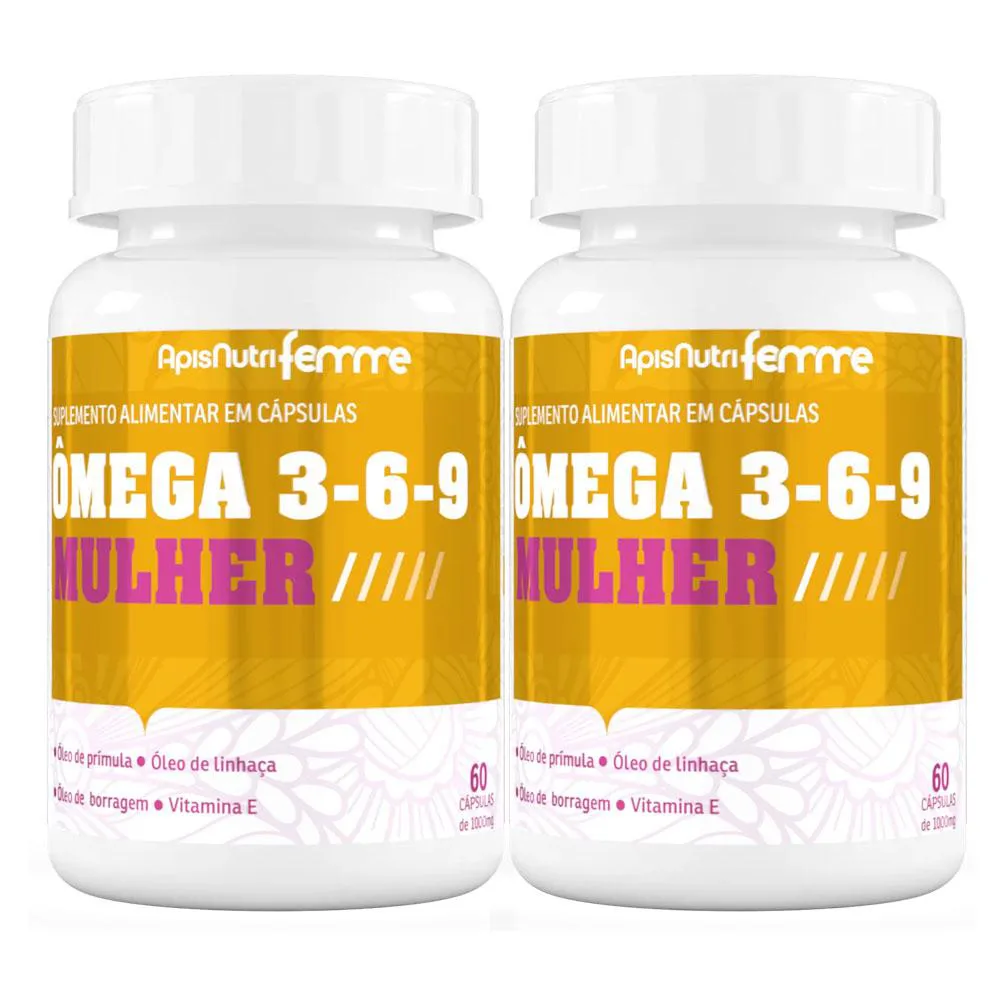 Kit 2 Ômega 3-6-9 Mulher Borragem Prímula e Linhaça 60 Caps Apisnutri
