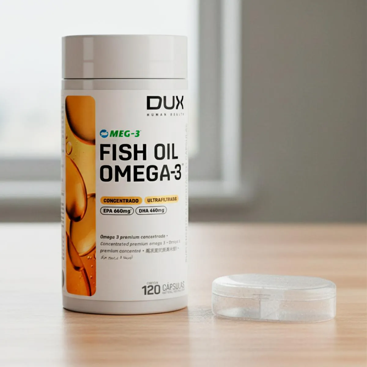 Kit 2 Ômega 3 Dux Fish Oil Sem Sabor 120 Cápsulas + Porta Cápsulas Descrição: Descubra o Ômega 3 Dux Fish Oil, um suplemento nutricional extraído de óleo de peixe de alta qualidade, formulado para quem busca enriquecer a alimentação diária com ácidos graxos essenciais. Conhecido por ser uma excelente fonte de Ômega 3, este produto é um complemento fundamental para a sua rotina de bem-estar e equilíbrio. Rico em EPA (ácido eicosapentaenoico) e DHA (ácido docosahexaenoico), o Fish Oil Dux oferece os nutrientes essenciais que o organismo não produz naturalmente, sendo necessário obtê-los através da alimentação ou suplementação. Destaques do Produto: