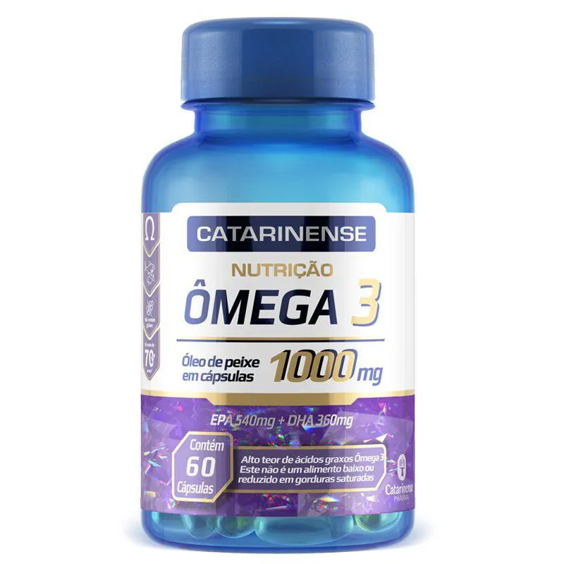 Kit 2 Ômega 3 EPA 540mg DHA 360mg Catarinense 60 cápsulas O consumo de ácidos graxos ômega 3 auxilia na manutenção de níveis saudáveis de triglicerídeos, desde que associado a uma alimentação equilibrada e hábitos de vida saudáveis. 3 cápsulas ao dia Não contém glúten Ingredientes: Óleo de peixe. Gelificante: gelatina (INS 428). Umectante: glicerina (INS 422). Veículo: Água. ALÉRGICOS: CONTÉM DERIVADOS DE PEIXE. PODE CONTER DERIVADOS DE AMENDOIM E SOJA