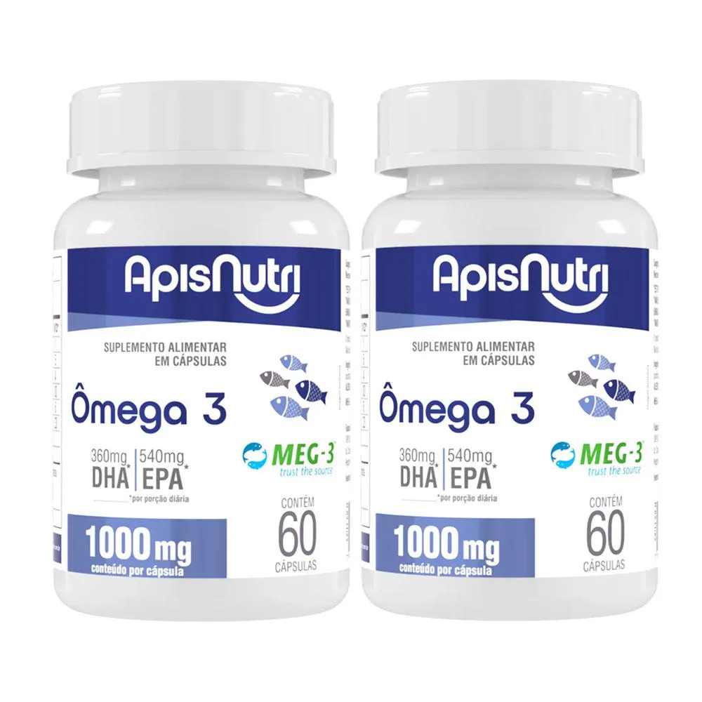 Kit 2 Omega 3 Óleo de Peixe EPA e DHA 1000mg 60 Caps Apisnutri