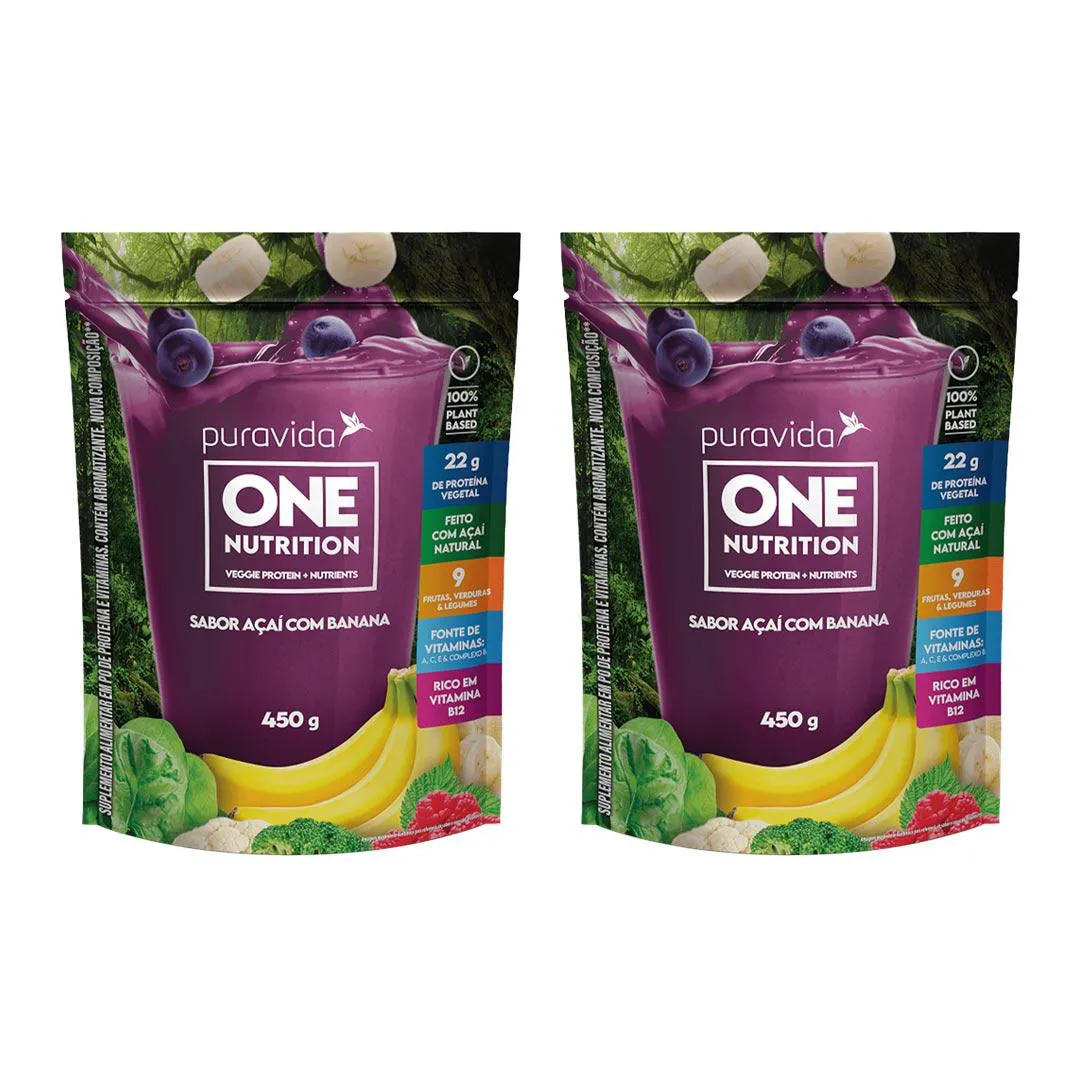 Kit 2 One Nutrition Vegan Açai Suplemento 450G - Puravida