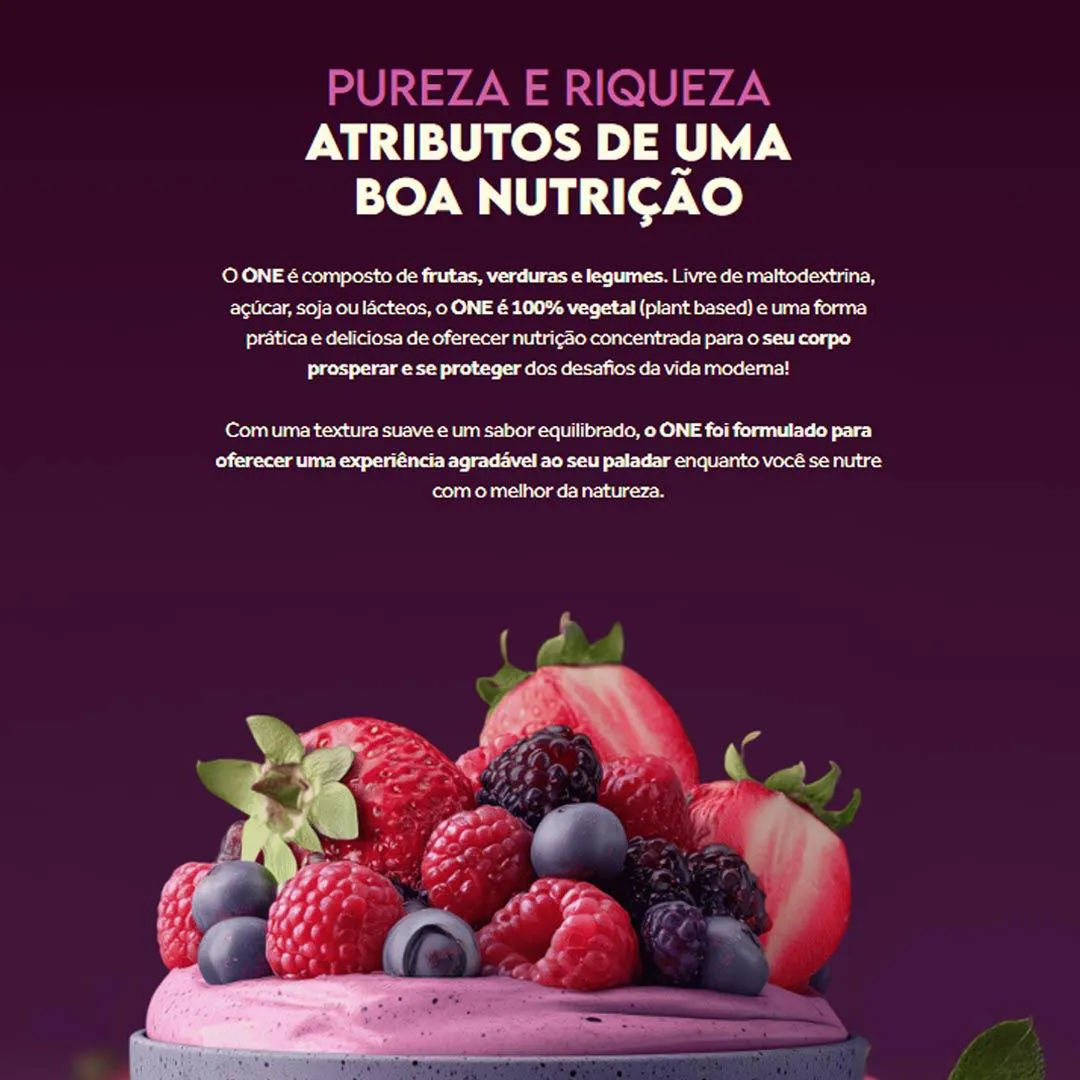Kit 2 One Nutrition Vegan Açai Suplemento 450g - Puravida O One Nutrition Vegan é um suplemento alimentar em pó da Puravida, formulado com proteína vegetal combinada a um complexo de frutas, vegetais liofilizados, fibras e micronutrientes. Seu objetivo é oferecer um perfil nutricional diversificado e de alta densidade por porção. A proteína utilizada é obtida da combinação de ervilha e arroz, fontes vegetais que, juntas, proporcionam um espectro mais completo de aminoácidos essenciais. Cada dose (45g) fornece 23g de proteína, sendo uma alternativa interessante para dietas com restrição a proteínas de origem animal. O produto também contém linhaça, quinoa, e um mix de vegetais como espinafre, cenoura, brócolis, pepino e abobrinha, além de frutas como banana e açaí, todos liofilizados — processo que preserva melhor os nutrientes. Além disso, é enriquecido com vitaminas (A, C, E, D, B12 e complexo B) e minerais (zinco, cálcio, ferro, selênio, magnésio). Adoçado com eritritol, taumatina e stevia, não possui açúcares adicionados nem ingredientes artificiais. É isento de glúten, lactose e soja. Composição por porção (45g): - 23 g de proteína vegetal - 3 g de fibras - 14 g de carboidratos totais (incluindo polióis) - 143 kcal por dose - Vitaminas e minerais em níveis variados (consultar rótulo) Uso recomendado: Diluir 1 porção (45 g) em 300 ml de água gelada ou bebida vegetal de sua preferência. Pode ser utilizado como suplemento entre refeições ou como parte de receitas nutricionais. Observações: - Produto 100% vegetal - Livre de ingredientes alergênicos comuns (sem glúten, lactose, soja) - Pode conter traços de oleaginosas (amêndoas, castanhas, amendoim) - Ideal para rotinas alimentares com foco em densidade nutricional SOBRE A LOJA: Somos a rede de farmácias mais antiga de São José dos Pinhais, atuando no ramo farmacêutico desde 1990 com comprometimento à qualidade e satisfação do cliente. É um prazer compartilhar os nossos valores e as nossas conquistas com quem confia no nosso trabalho! Imagens dos Produtos são Meramente Ilustrativas. Todas as Informações Divulgadas são de Responsabilidade Exclusiva do Fabricante/fornecedor.
