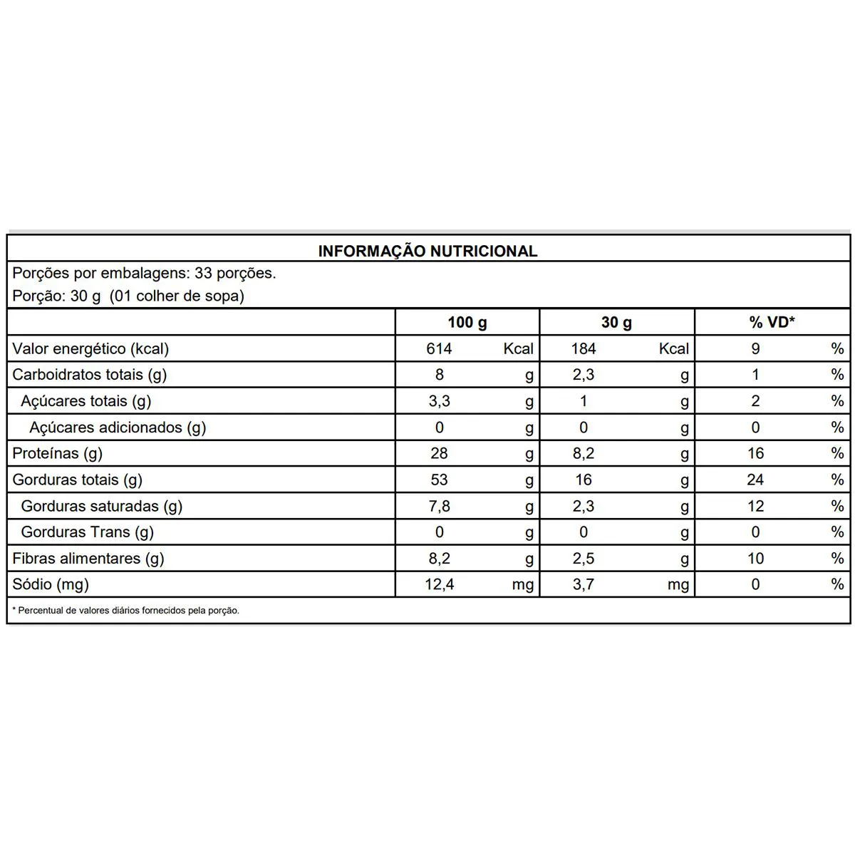 - Sem adição de açúcar e livre de glúten.