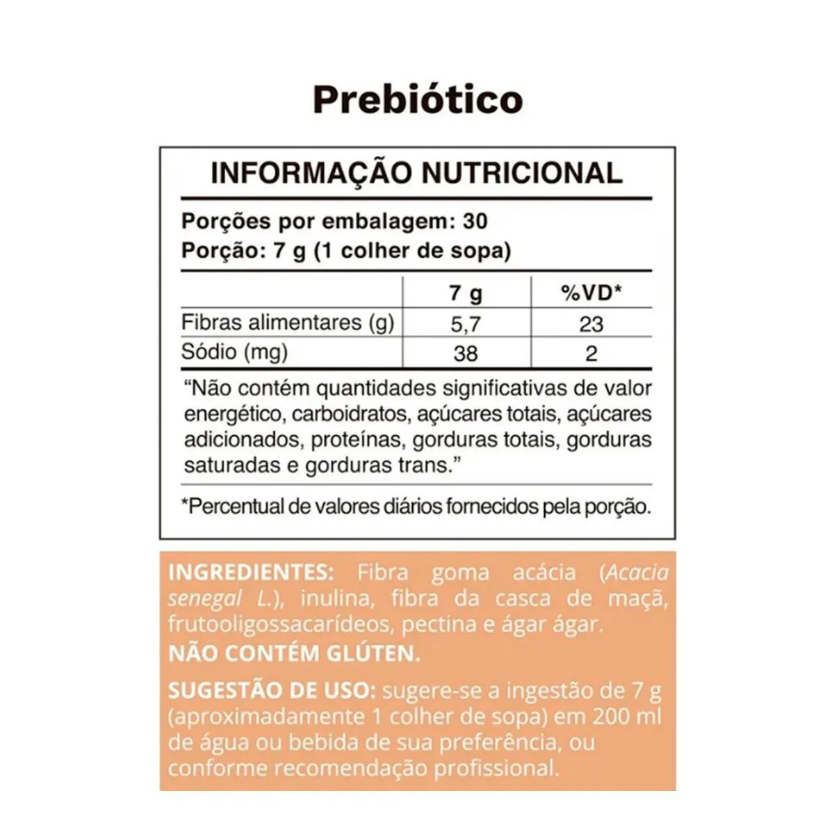 - Fibra goma acácia (Acacia senegal L.), inulina, fibra da casca de maçã, frutooligossacarídeos, pectina e ágar-ágar.