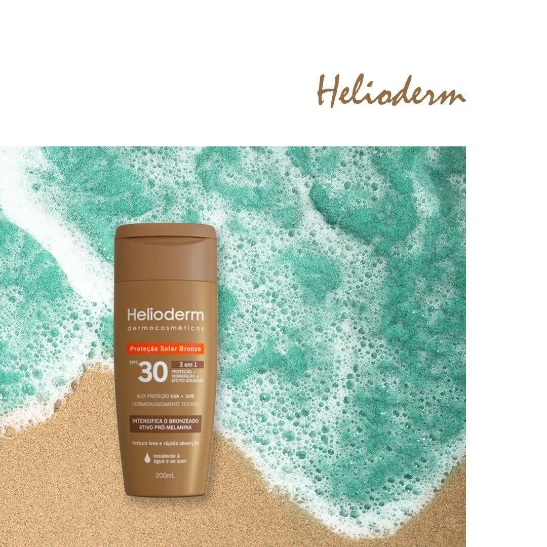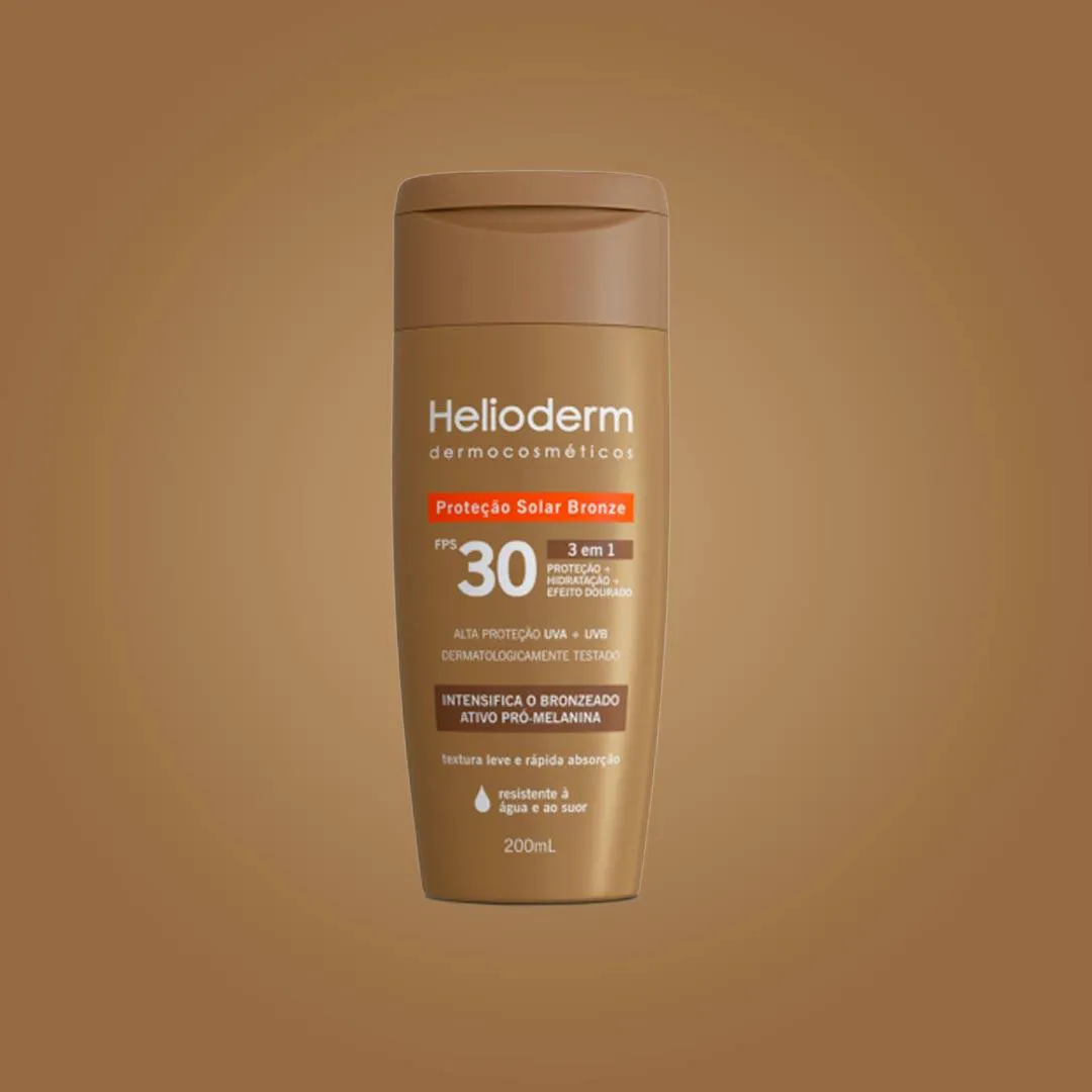 Kit com 2 Protetor Helioderm Bronze Fps 30 - 200ml - Kley Hertz O protetor solar Helioderm Bronze FPS 30, foi desenvolvido para oferecer proteção solar ampla e auxiliar no cuidado diário da pele durante a exposição ao sol. Com FPS 30, contribui para a defesa contra os efeitos da radiação UVA e UVB, principais responsáveis por agressões solares e envelhecimento precoce da pele. Sua fórmula é enriquecida com o complexo Pró-Melanina, que atua estimulando a pigmentação natural, favorecendo um bronzeado uniforme. A textura é oil-free, com toque seco e rápida absorção, ideal para quem busca conforto sem deixar a pele oleosa. O produto também oferece hidratação, ajudando na manutenção da maciez da pele mesmo em ambientes de calor, praia ou piscina. Além disso, é resistente à água e ao suor, prolongando a eficácia durante atividades ao ar livre. Características técnicas: - FPS 30: proteção contra radiação UVA e UVB. - Pró-Melanina: ativo que estimula a pigmentação natural da pele. - Oil-free: fórmula leve, rápida absorção e toque seco. - Hidratação: auxilia na manutenção da maciez da pele. - Resistente à água e ao suor. - Apresentação: frasco de 200 ml. Modo de uso: - Aplicar de maneira uniforme sobre a pele seca, 30 minutos antes da exposição solar. - Reaplicar a cada 2 horas ou após sudorese intensa, mergulho ou secagem com toalha. - Evitar contato com os olhos e manter fora do alcance de crianças. SOBRE A LOJA: Somos a rede de farmácias mais antiga de São José dos Pinhais, atuando no ramo farmacêutico desde 1990 com comprometimento à qualidade e satisfação do cliente. É um prazer compartilhar os nossos valores e as nossas conquistas com quem confia no nosso trabalho! Imagens dos Produtos são Meramente Ilustrativas. Todas as Informações Divulgadas são de Responsabilidade Exclusiva do Fabricante/fornecedor.