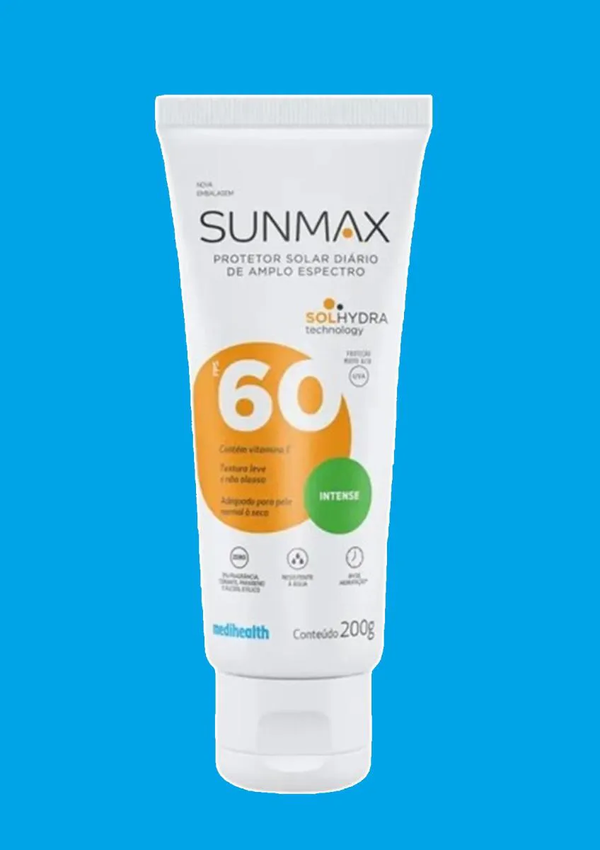 Sunmax Intense é um protetor solar corporal desenvolvido para a pele normal a seca. Com alta proteção FPS 60 e UVA 20, ajuda a prevenir queimaduras solares, vermelhidão e o fotoenvelhecimento, tudo isso enquanto hidrata a pele a partir da sua tecnologia SOLhydra, que proporciona hidratação prolongada por até 8 horas e previne a perda de água.
