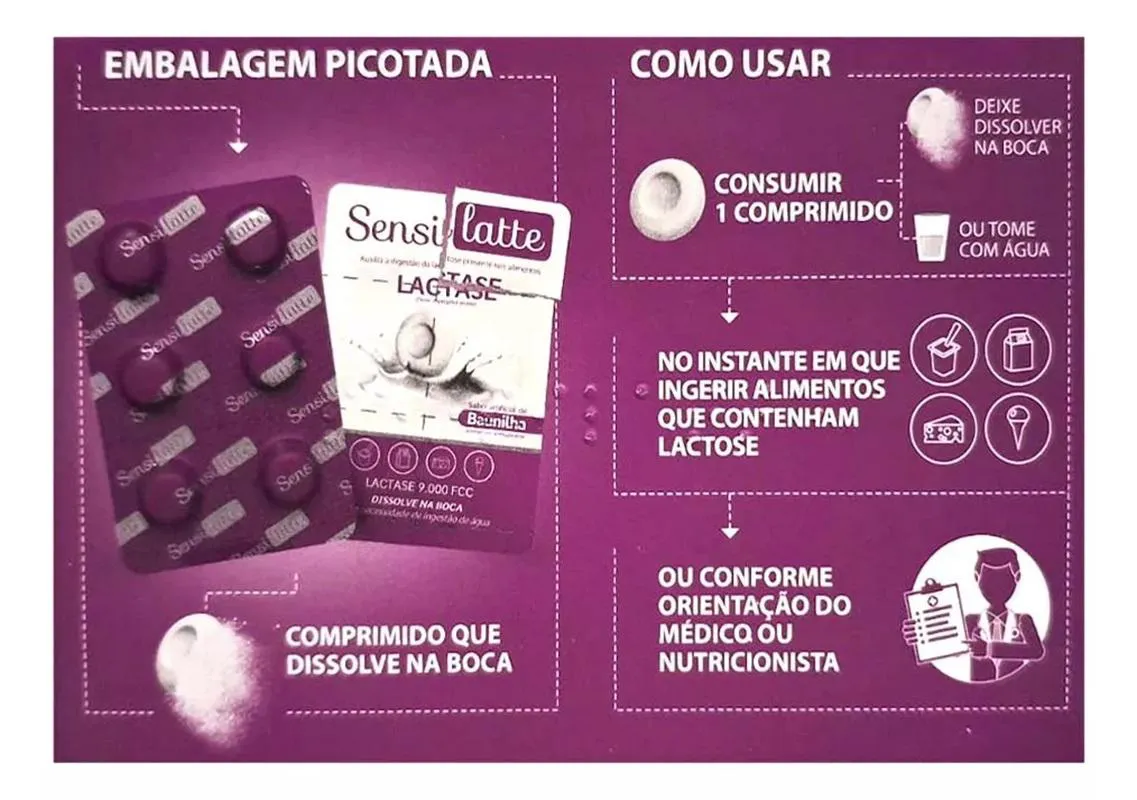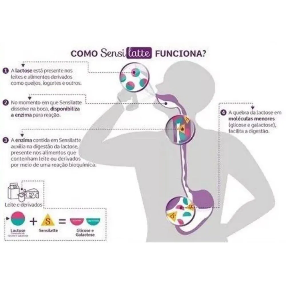 - O processo: A enzima contida em Sensilatte faz a quebra da lactose em moléculas menores (glicose e galactose), facilitando a absorção.
